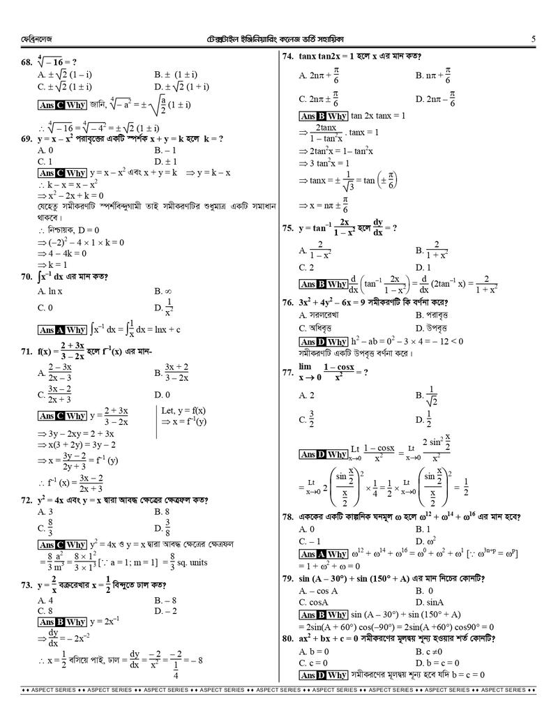 Step-01 : টেক্সটাইল কলেজের শুরু থেকে বর্তমান সকল প্রশ্নের ব্যাখ্যাসহ সমাধান।
