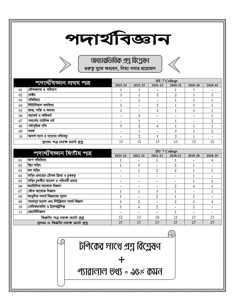 বিগত বছরের প্রশ্ন বিশ্লেষণ। যেখানে ২ টি ধাপে সাত কলেজের সকল সালের এবং ঢাবির বিগত ৫ বছরের প্রশ্নের বিশ্লেষন ( সাত কলেজের বেশিভাগ প্রশ্ন ঢাবির পূর্ববর্তী প্রশ্ন থেকে হুবাহু অধবা একই কন্সেপ্টের হয়ে থাকে তাই ঢাবির প্রশ্ন বিশ্লেষন গুরুতপূর্ণ)