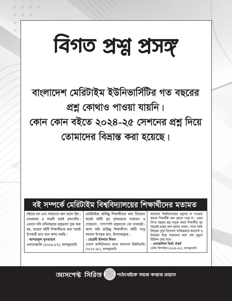 এটি বাজারের একমাত্র বই যা কিনা মেরিটাইম বিশ্ববিদ্যালয়ের শিক্ষার্থী দ্বারা রচিত। তাই পরীক্ষার জন্য নির্ভরযোগ্য গাইডলাইন পাওয়া যাবে শুধু এই বইটিতেই।