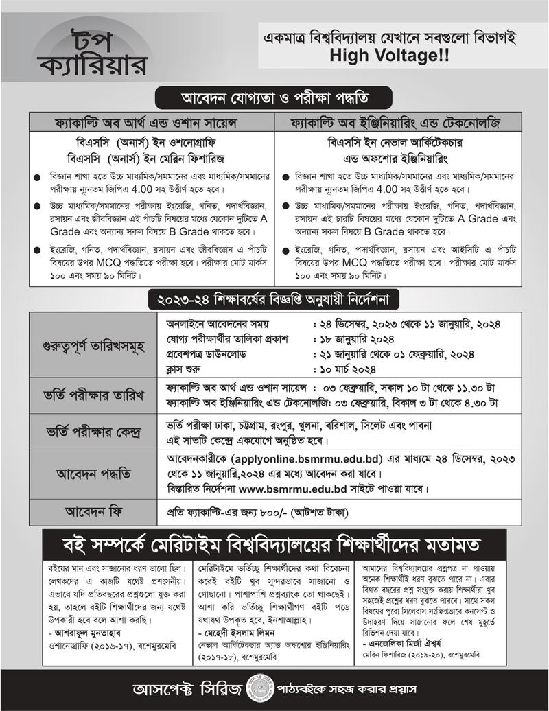 বঙ্গবন্ধু শেখ মুজিবুর রহমান মেরিটাইম বিশ্ববিদ্যালয়ের বিজ্ঞান বিষয়ক ২টি অনুষদের ভর্তি গাইড পাওয়া যাচ্ছে দেশের সর্বত্র।