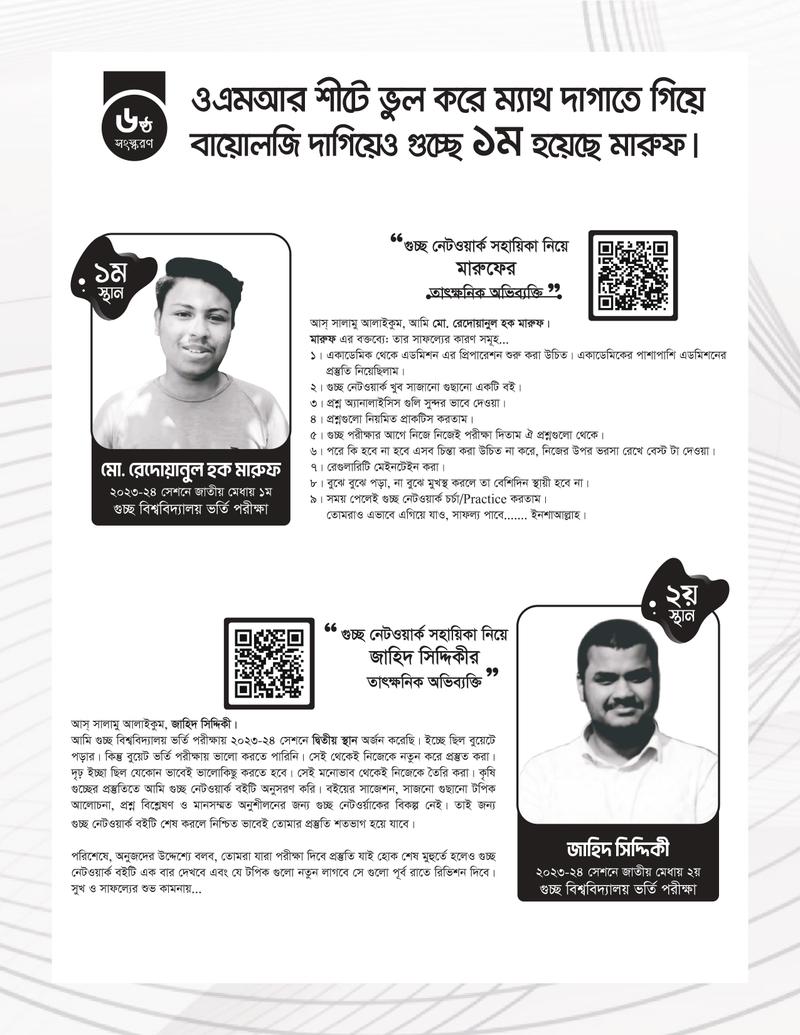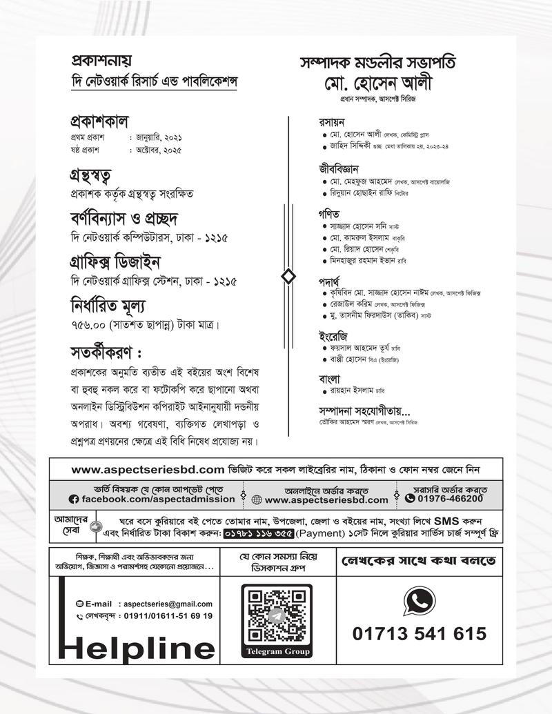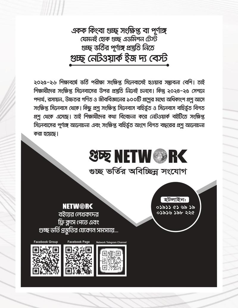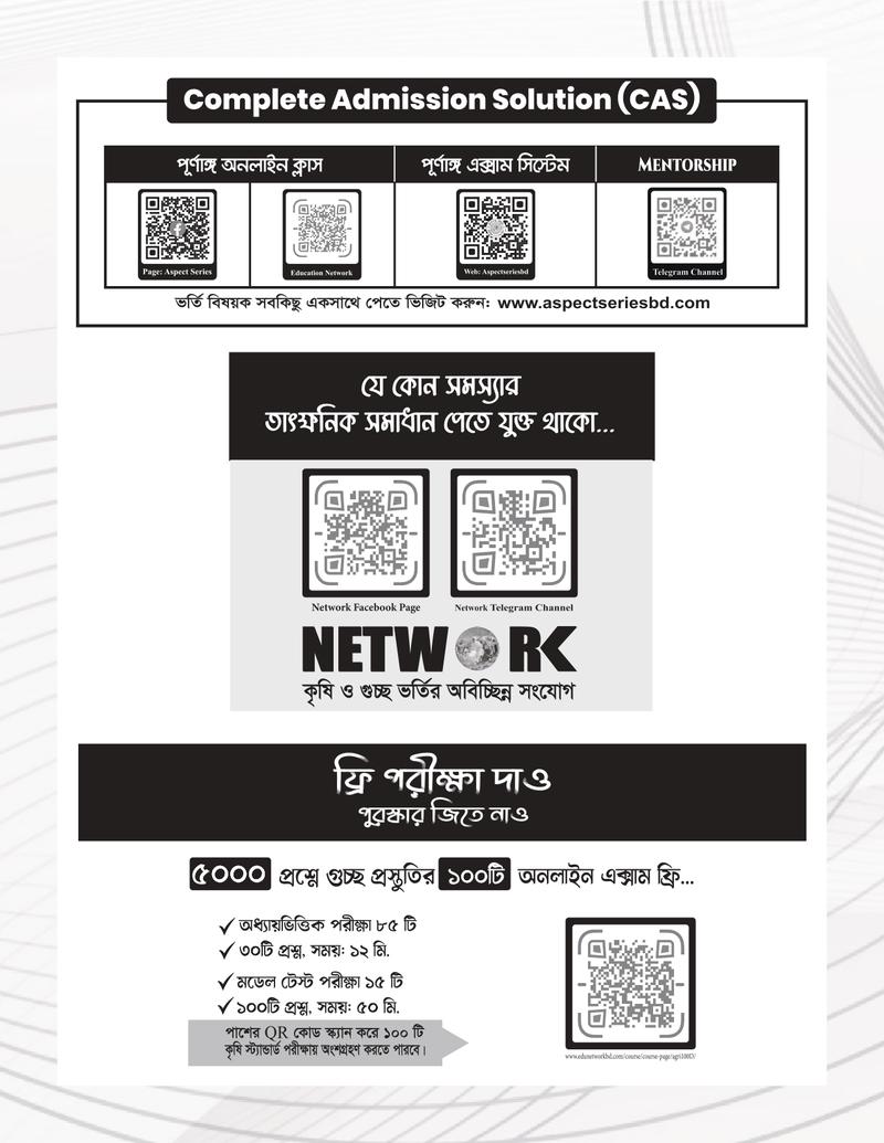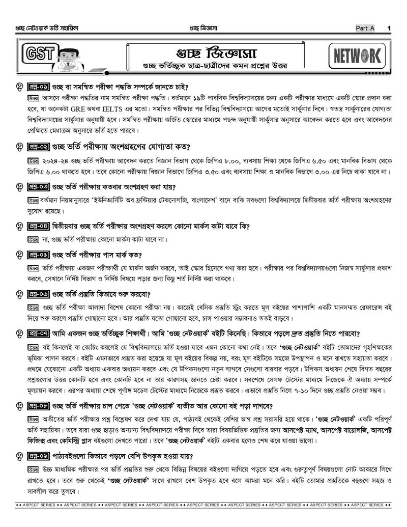 গুচ্ছ ভর্তির পূর্ণাঙ্গ প্রস্তুতির জন্য সাজেশন, আলোচনা, প্রশ্নব্যাংক ও মডেলটেস্ট সংবলিত আসপেক্ট সিরিজের সম্পূর্ণ নতুন সংস্করণ " গুচ্ছ নেটওয়ার্ক (বিজ্ঞান) ভর্তি সহায়িকা"
