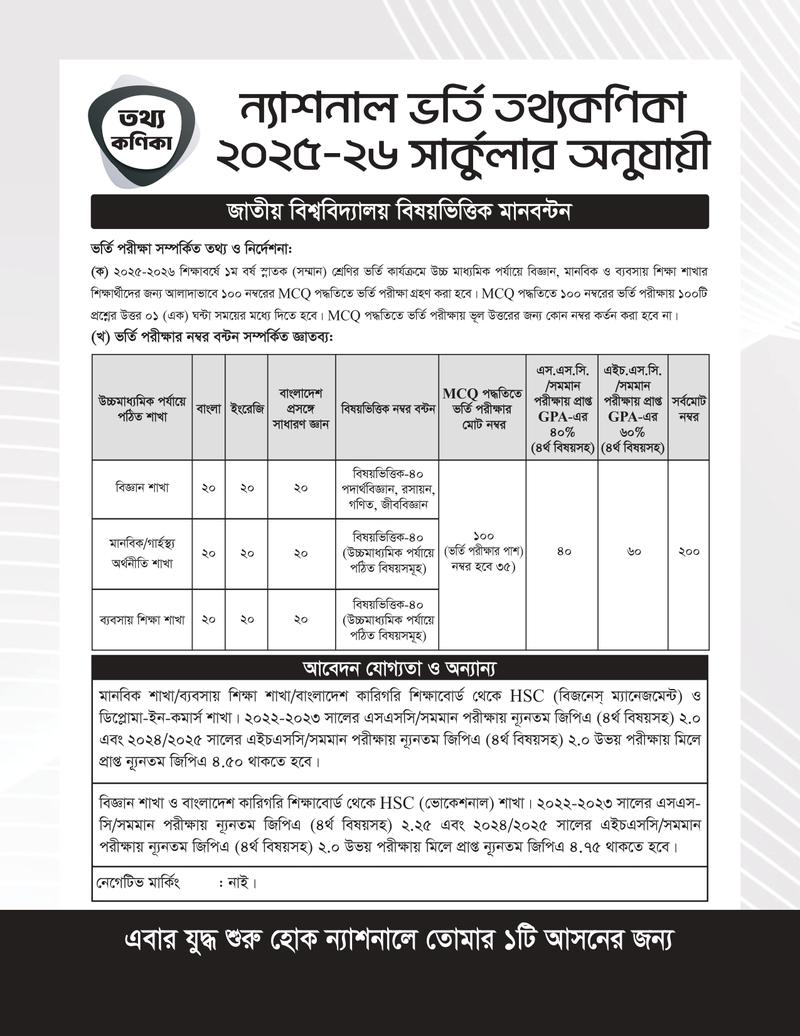 ন্যাশনালে'র সর্বশেষ ৫ বছরের প্রশ্ন সম্বলিত মডেল টেস্ট (জাতীয় বিশ্ববিদ্যালয় ভর্তি পরীক্ষা অনুরূপ ৫০ সেট)