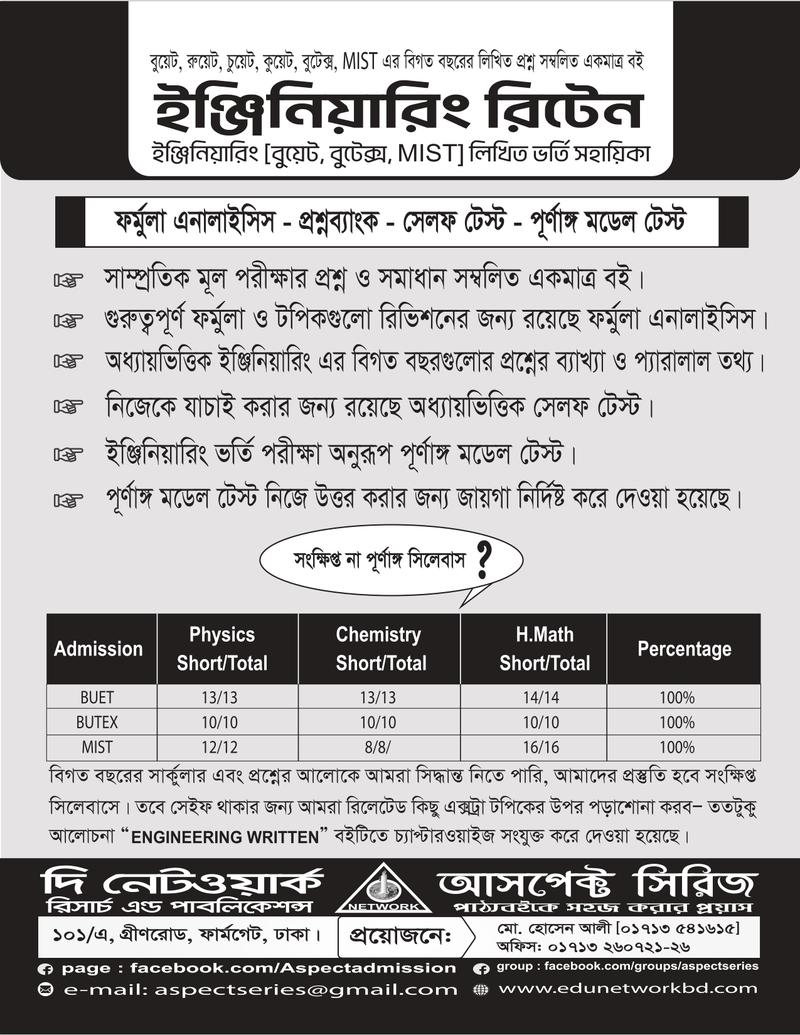 - প্রস্তুতিঃ ইঞ্জিনিয়ারিং [বুয়েট, বুটেক্স, MIST] লিখিত ভর্তি সহায়িকা