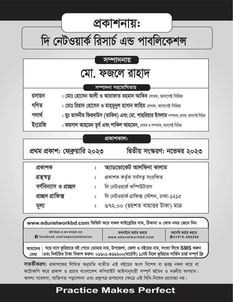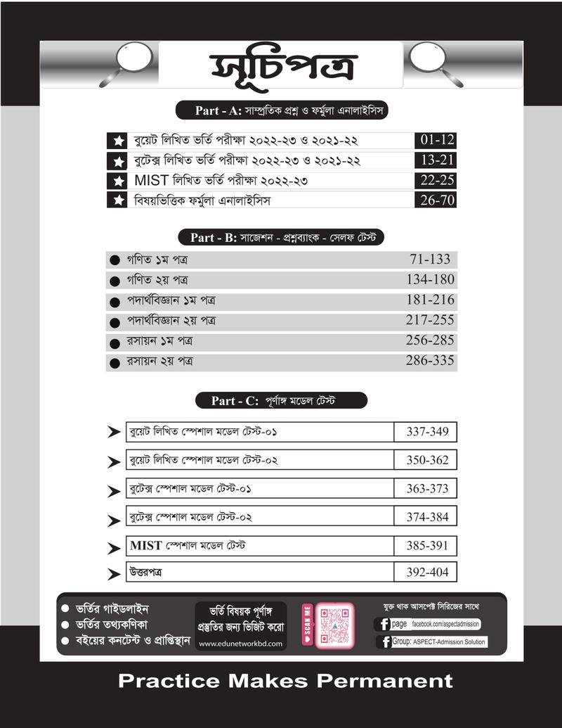প্রিয় শিক্ষার্থীরা, তোমাদের সামনে ইঞ্জিনিয়ারিং ভর্তি পরীক্ষা।তোমাদের প্রস্তুতির সহায়িকা হিসেবে আসপেক্ট সিরিজ থেকে প্রকাশিত হলো BUET WRITTEN বইটি। আমাদের বইটি তোমাদের ইঞ্জিনিয়ারিং লিখিত প্রস্তুতির পূর্ণাঙ্গ সহায়িকা হিসেবে কাজ করবে।
