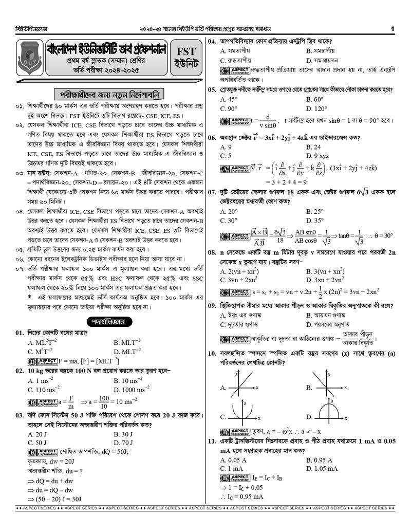FST ইউনিটের সকল বিষয়ের প্রশ্ন সম্বলিত