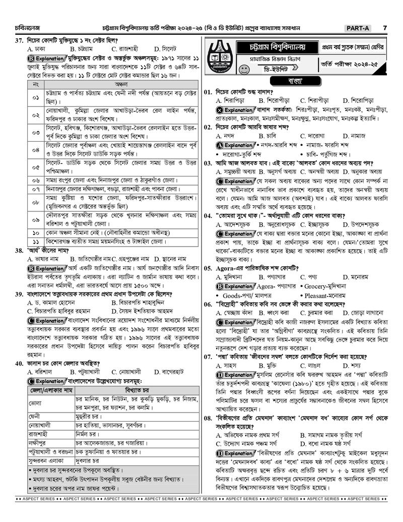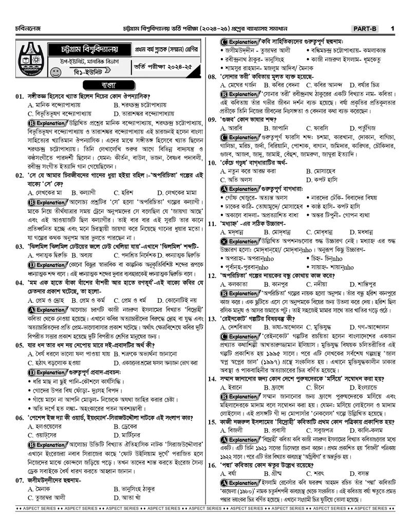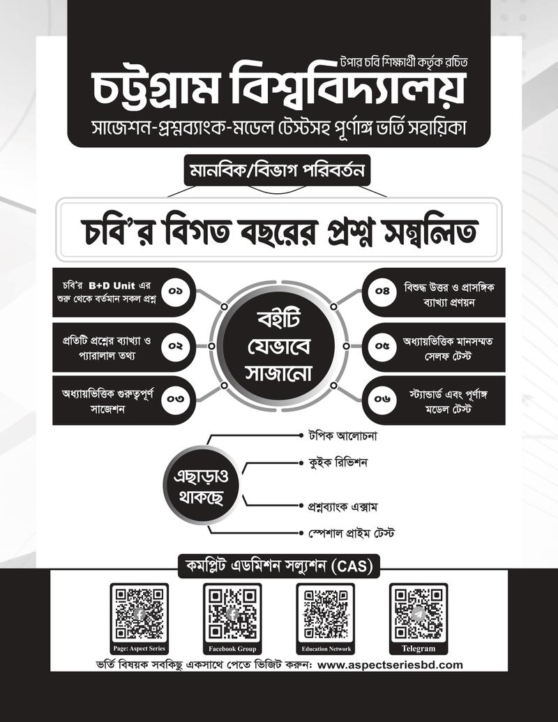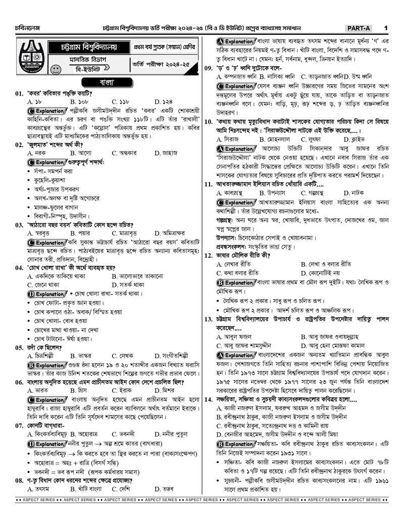 চট্টগ্রাম বিশ্ববিদ্যালয় B+D Unit এর শুরু থেকে বর্তমান সকল প্রশ্নের ব্যাখ্যাসহ সমাধানঃ