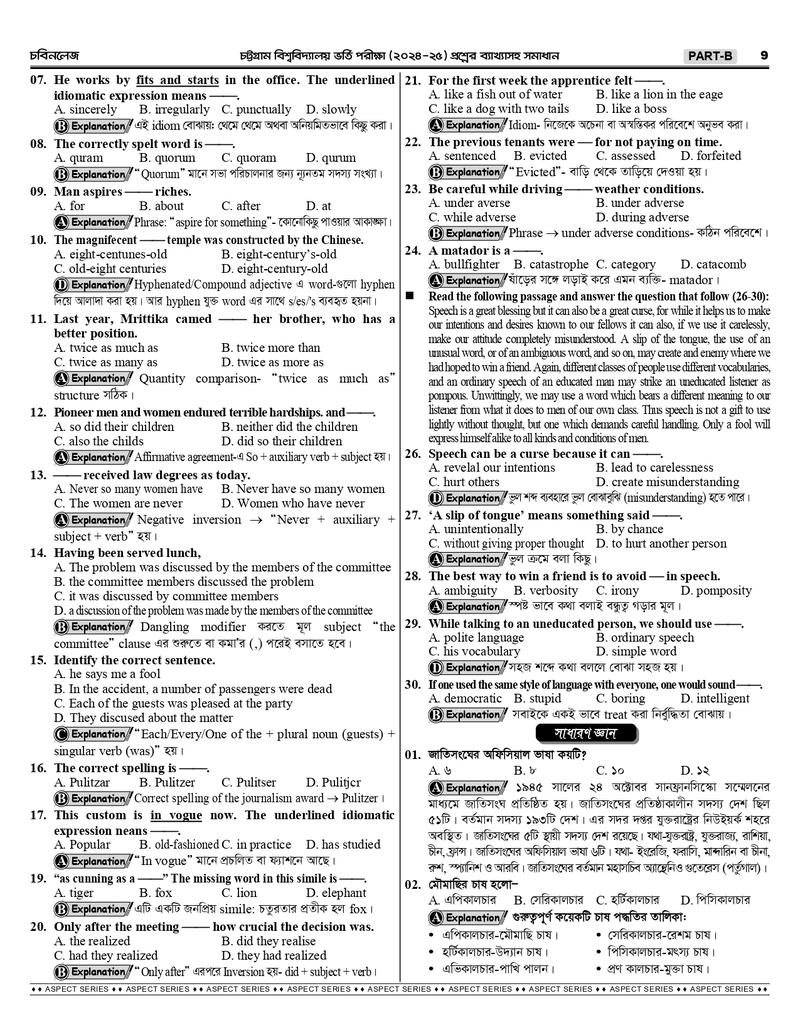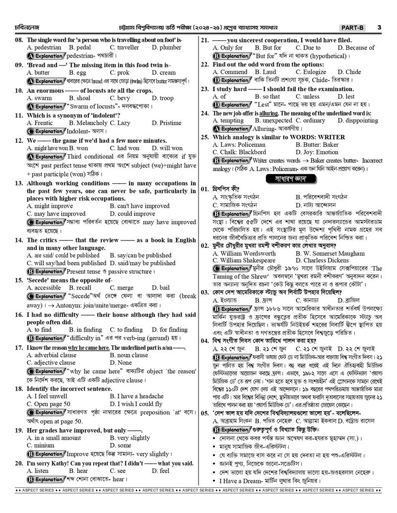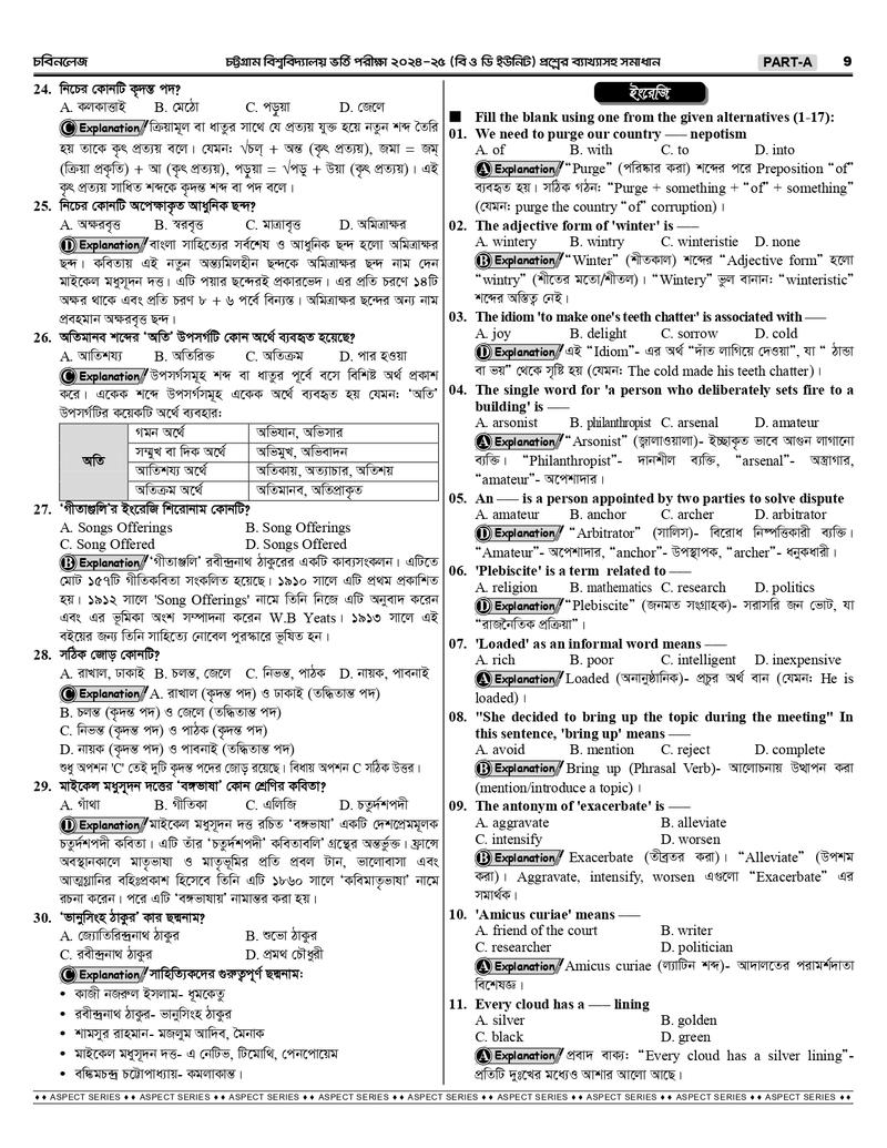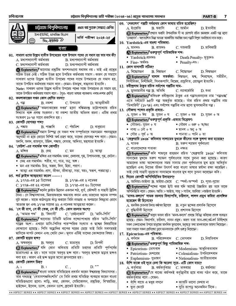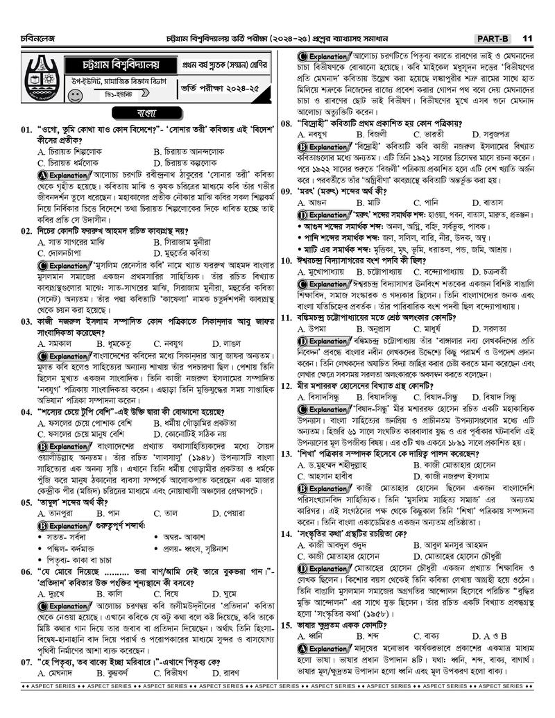 চট্টগ্রাম বিশ্ববিদ্যালয় B+D Unit এর শুরু থেকে বর্তমান সকল প্রশ্নের ব্যাখ্যাসহ সমাধানঃ