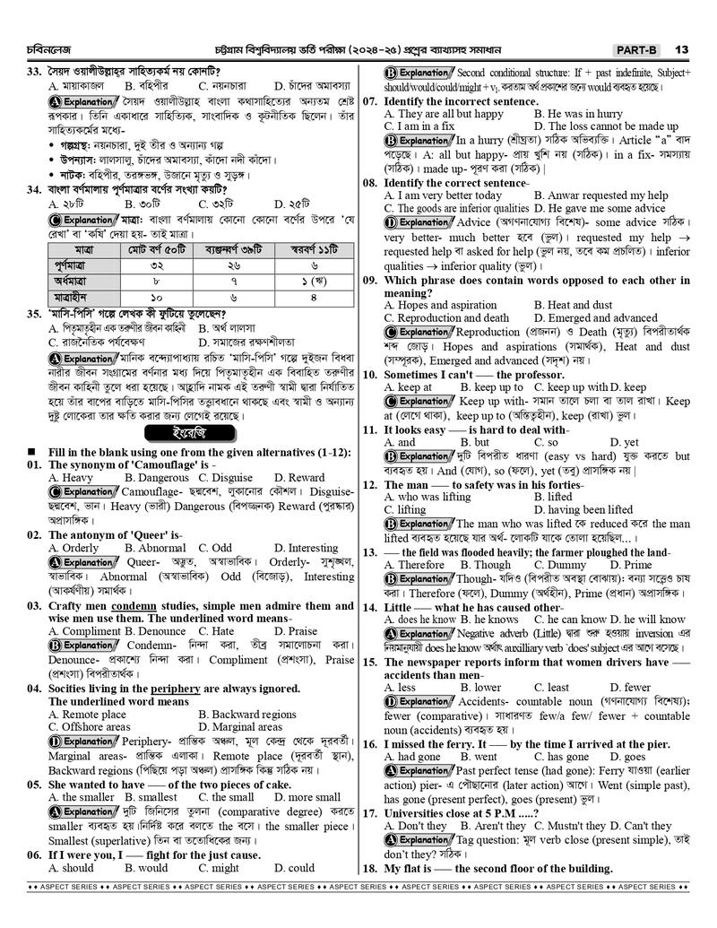 বিশুদ্ধ উত্তর ও প্রাসঙ্গিক ব্যাখ্যা প্রণয়ন