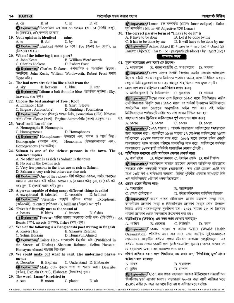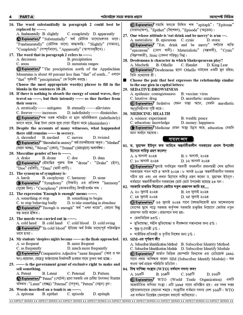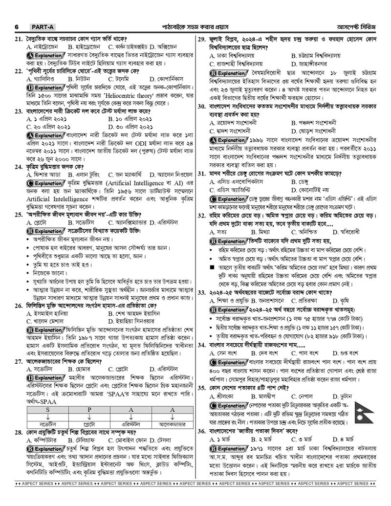 প্রতিটি প্রশ্নের ব্যাখ্যা ও প্যারালাল তথ্য