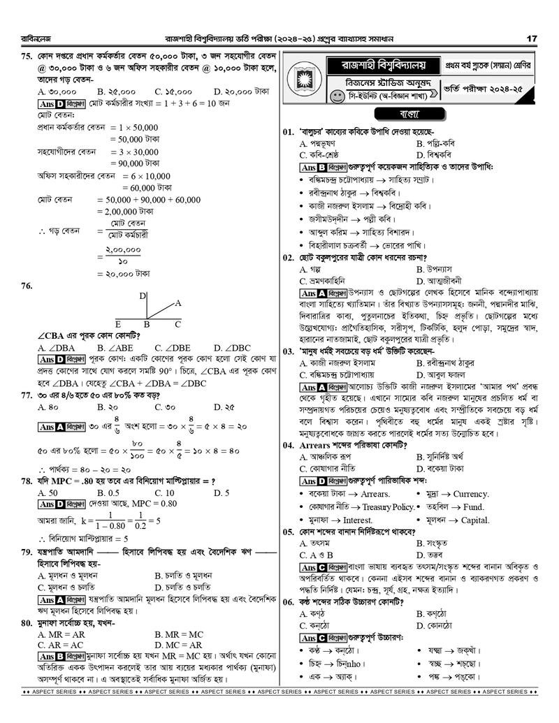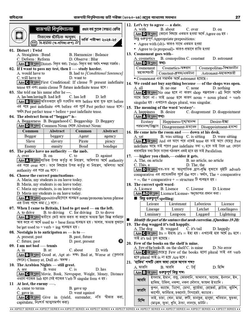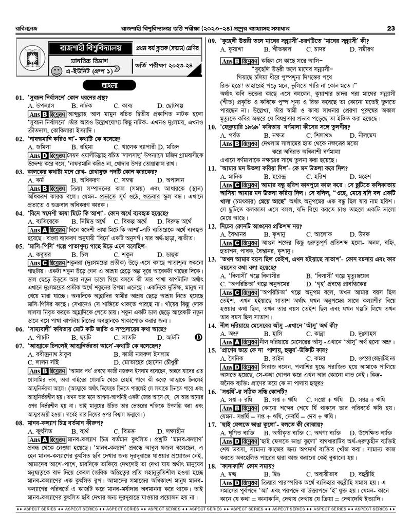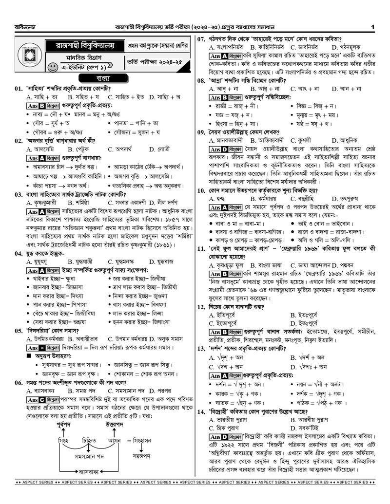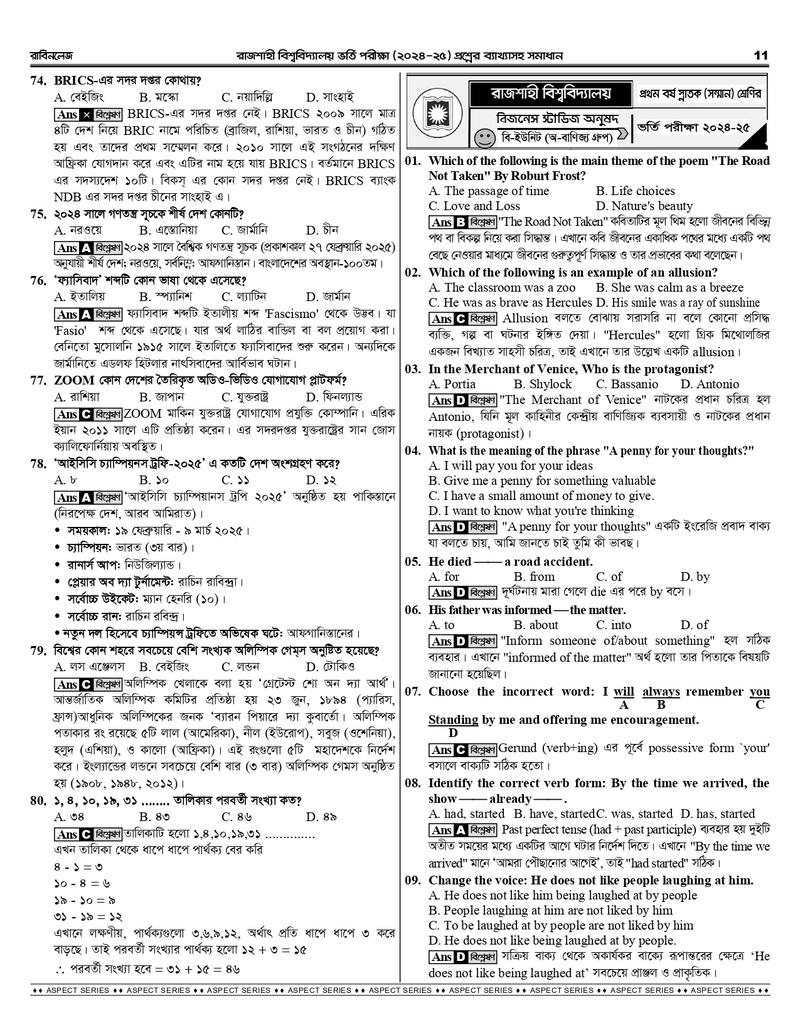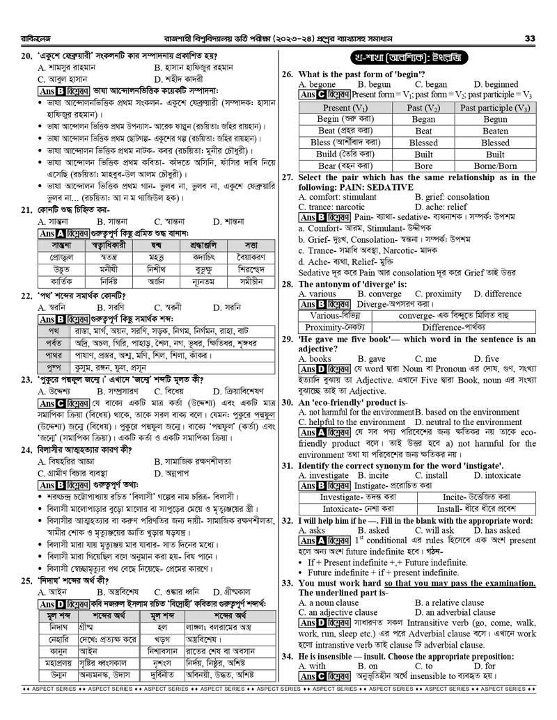✔️রাবি’র মানবিক বিভাগের বাংলা ইংরেজি সাধারণ জ্ঞান প্রশ্ন সম্বলিত