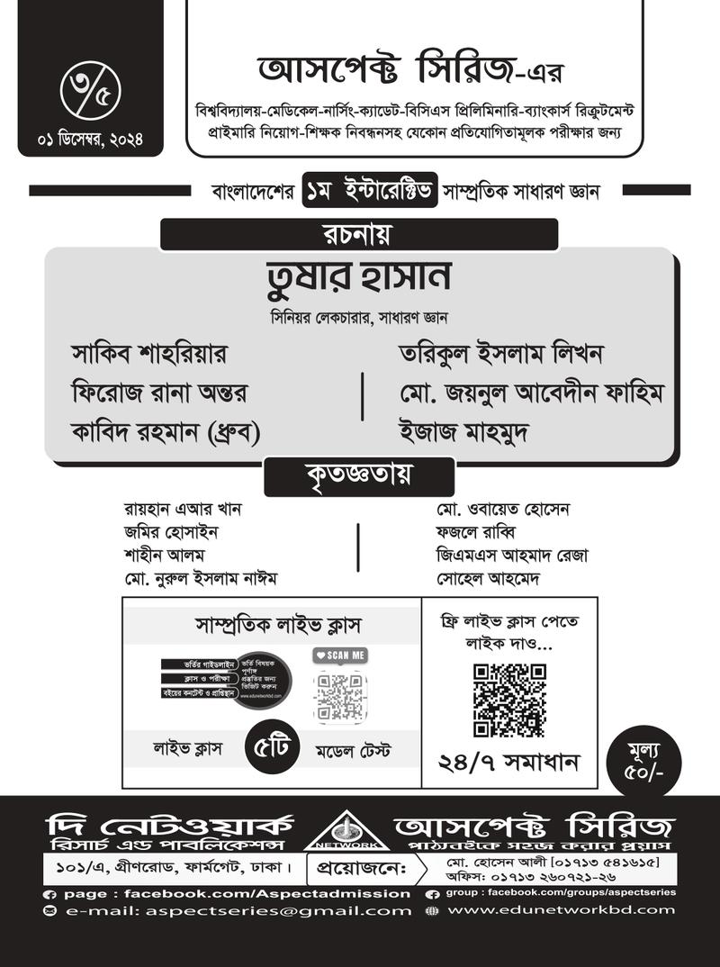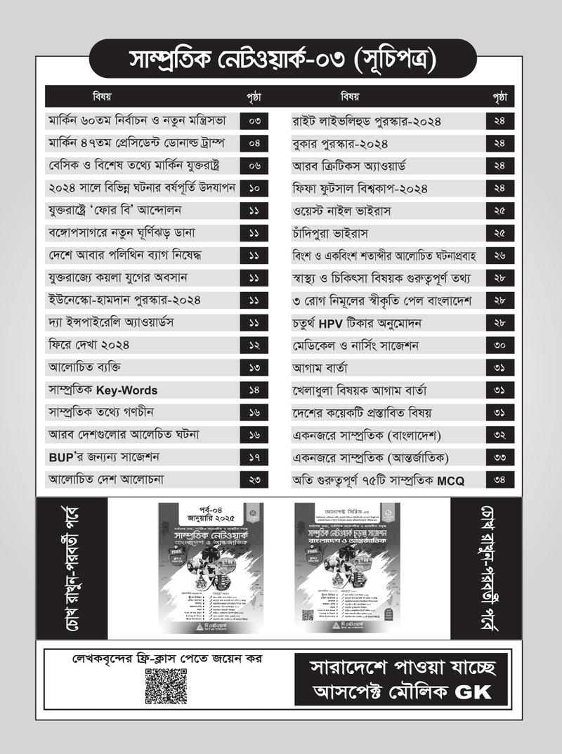 ভর্তি পরীক্ষাসহ যেকোন ধরনের প্রতিযোগিতামূল পরীক্ষায় সাধারণ জ্ঞান অতি গুরুত্বপূর্ণ বিষয়। আর এই সাধারণ জ্ঞান মূলক মুখস্ত করার জন্য সাম্প্রতিক বিষয়গুলি সবসময় চর্চা রাখা জরুরি। শিক্ষার্থীদের প্রয়োজনের কথা বিবেচনা করে নেটওয়ার্ক পরিবার বাজারে এনেছে সাম্প্রতিক নেটওয়ার্ক সিরিজের পর্ব-০৩। যা ধারাবাহিকভাবে প্রকাশিত হবে, ইনশা আল্লাহ।