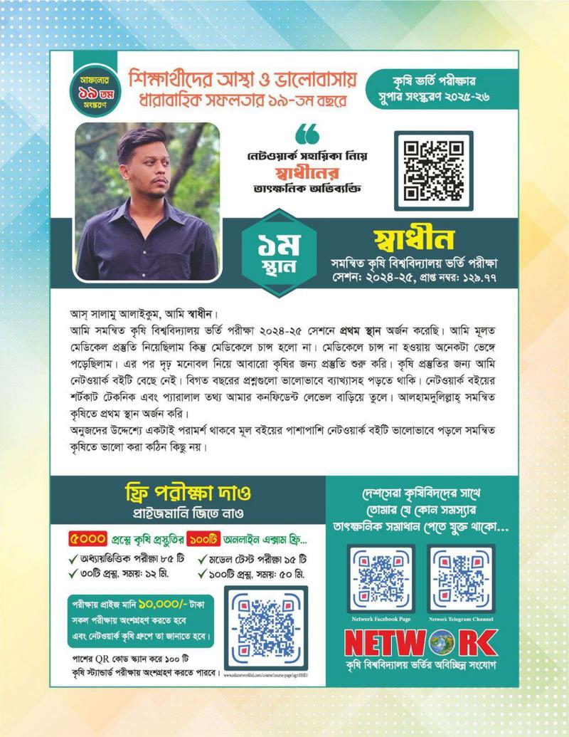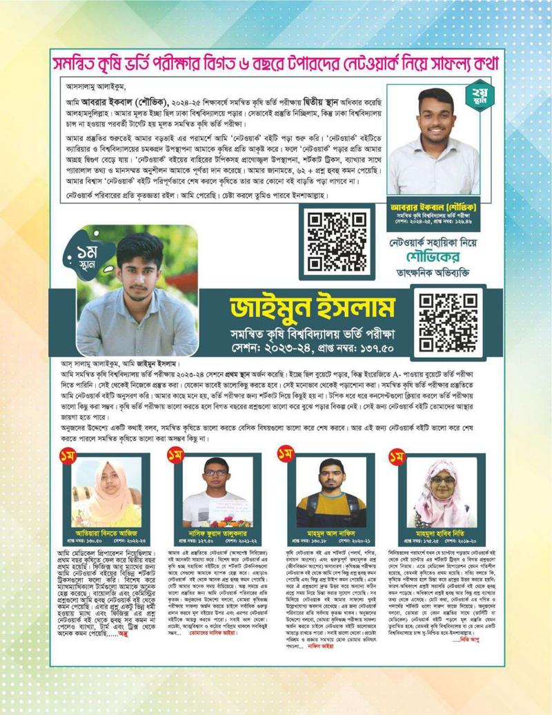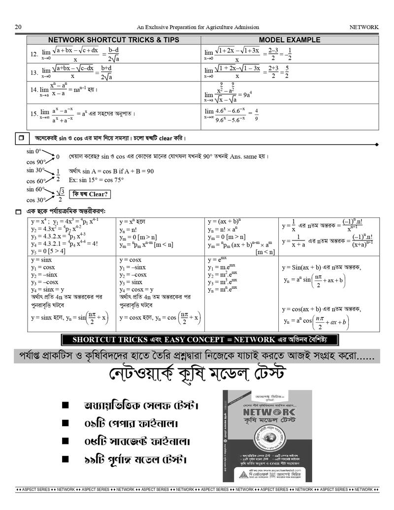 প্রিয় শিক্ষার্থীরা, তোমাদের কৃষি ভর্তি প্রস্তুতির সহায়িকা হিসেবে কার্যকর ভুমিকা পালন করবে আসপেক্ট সিরিজের সমন্বিত কৃষি বিশ্ববিদ্যালয় ভর্তি সহায়িকা নেটওয়ার্ক কৃষি ভর্তি সহায়িকা।