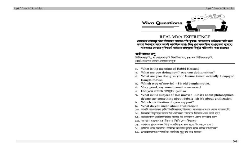 • প্রস্তুতিঃ For Any Agricultural oral Test
