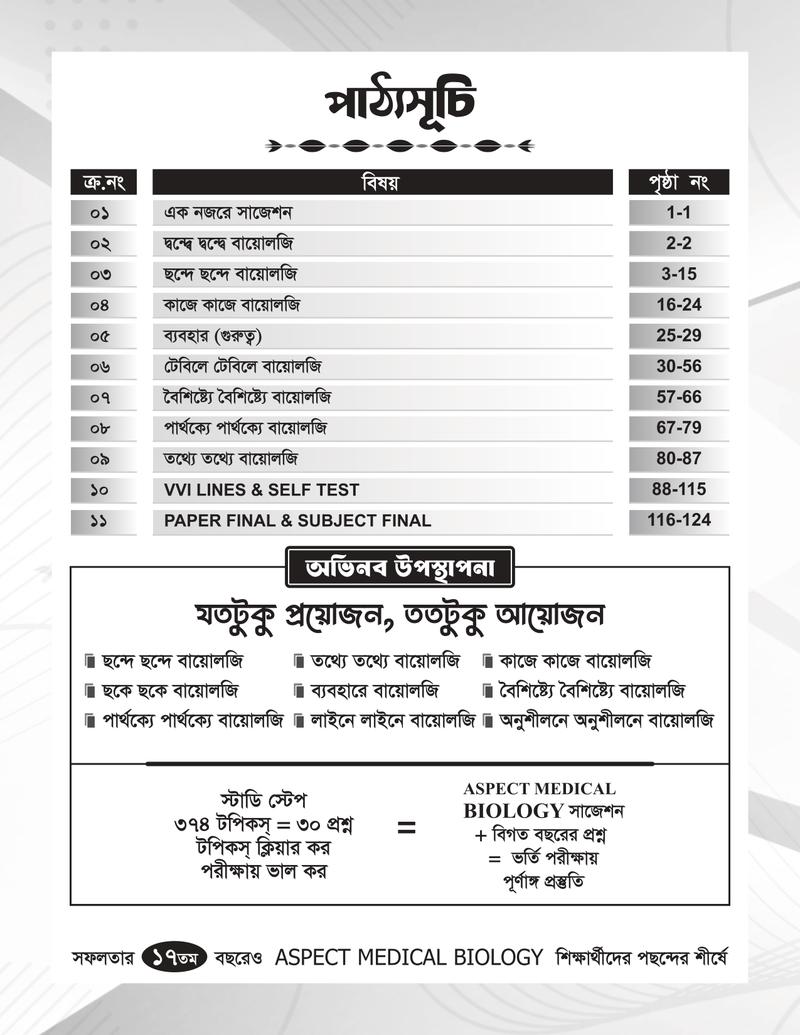 • বইয়ের নামঃ আসপেক্ট মেডিকেল বায়োলজি সাজেশন