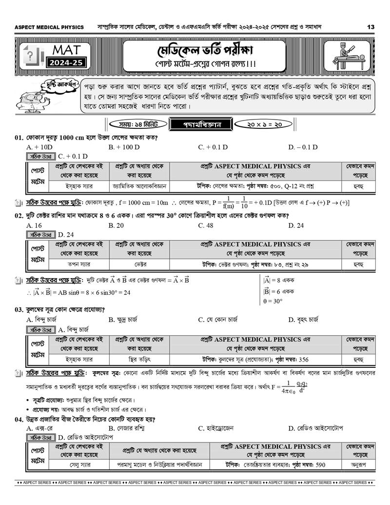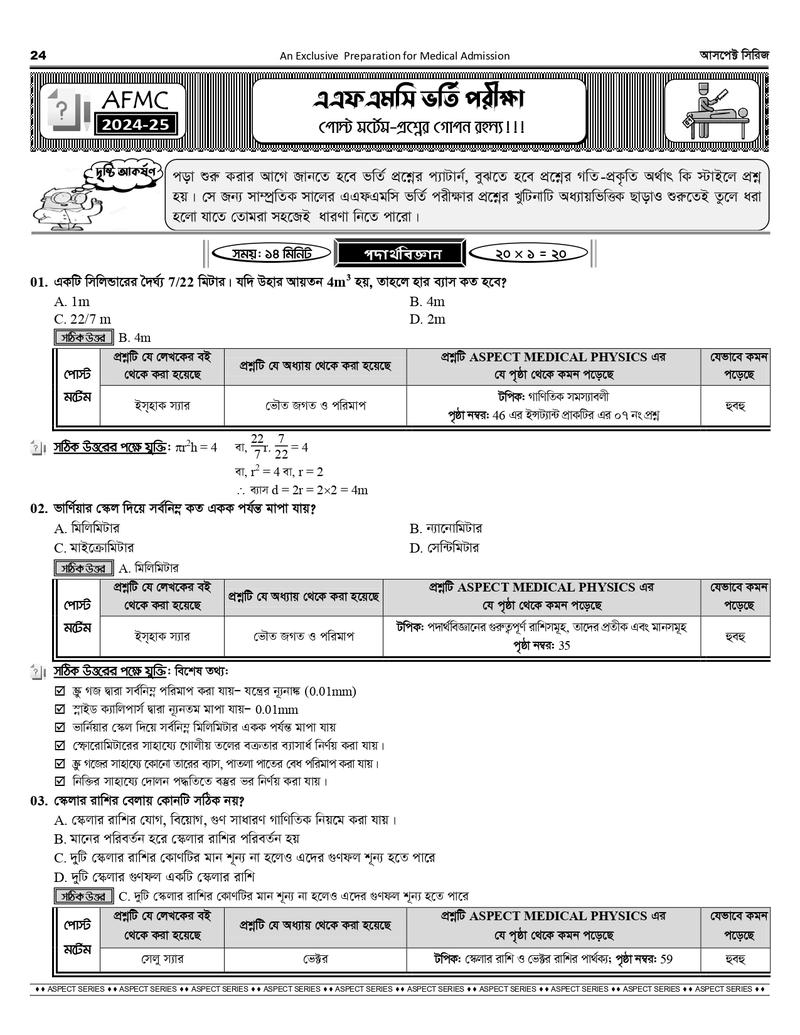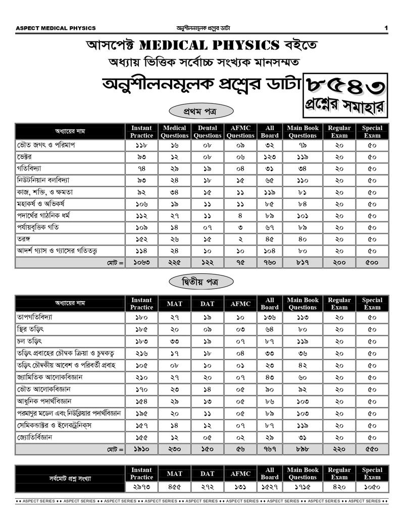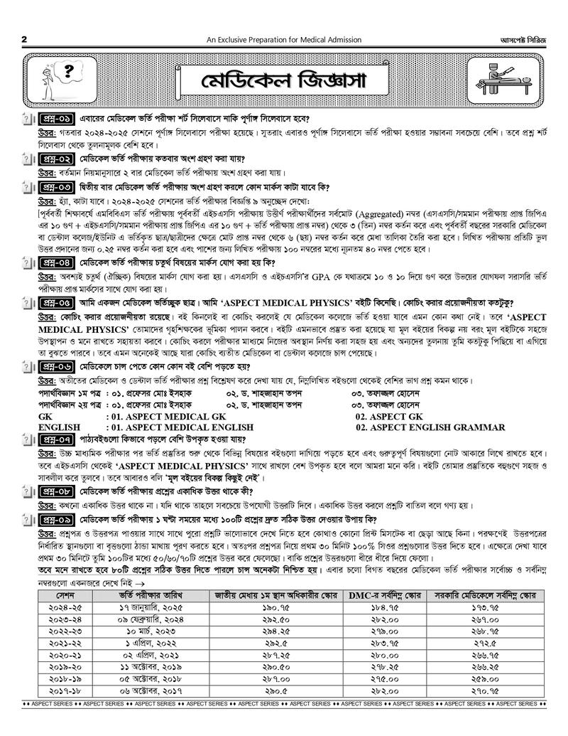 আসপেক্ট মেডিকেল সিরিজে যা যা রয়েছে-