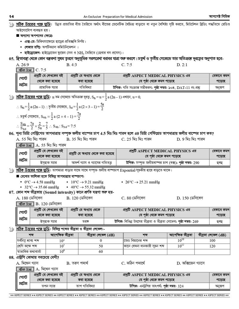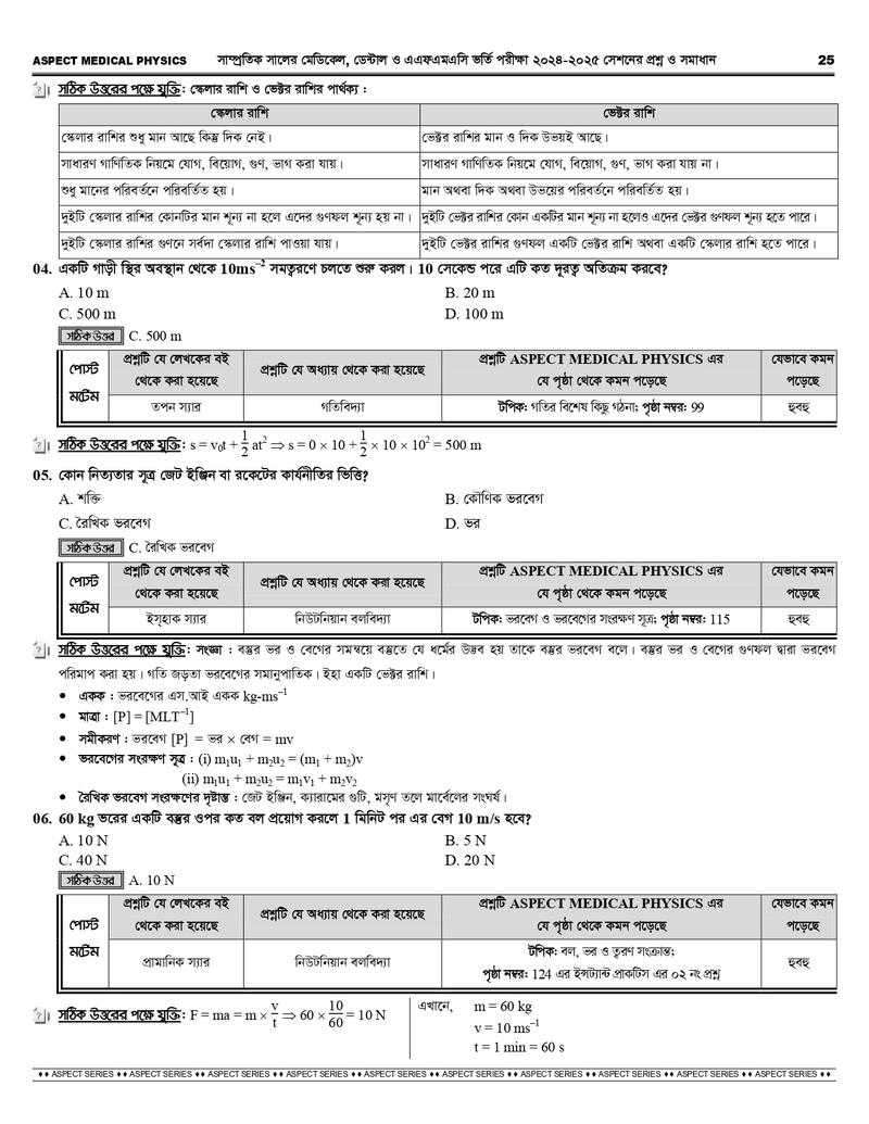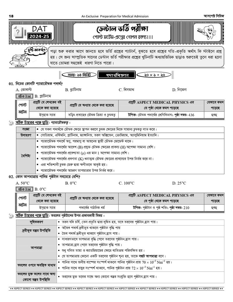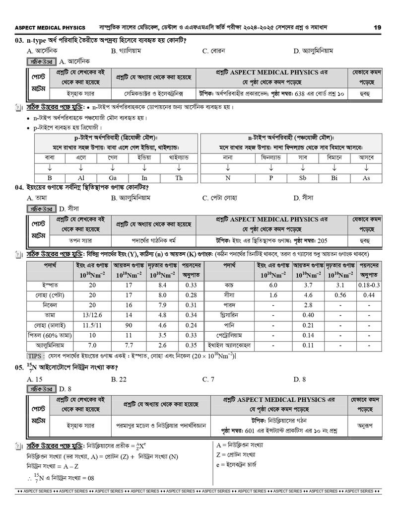 আসপেক্ট মেডিকেল সিরিজে যা যা রয়েছে-