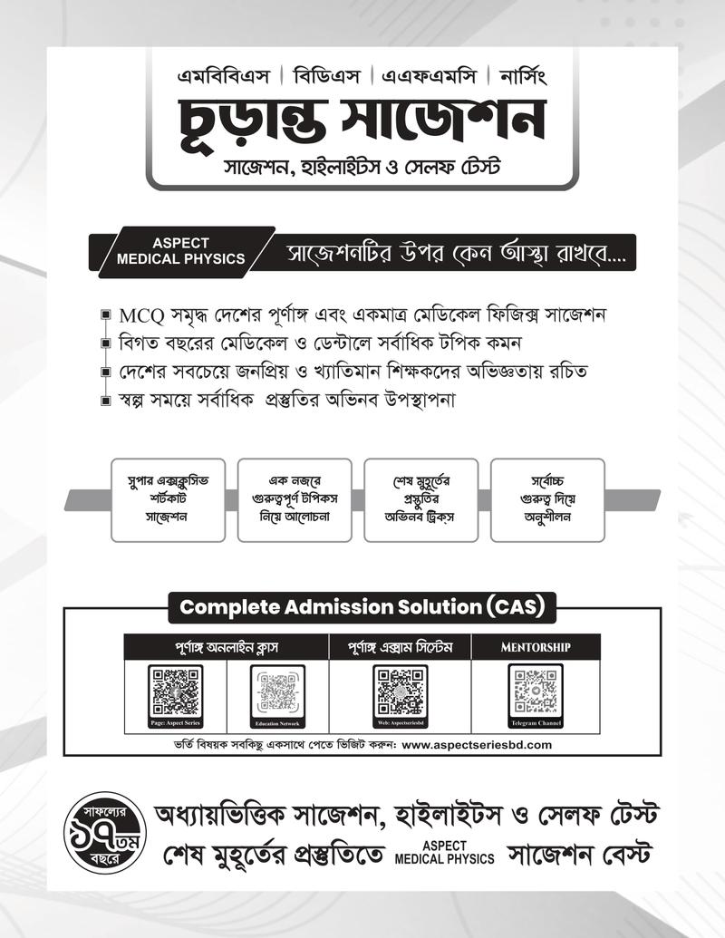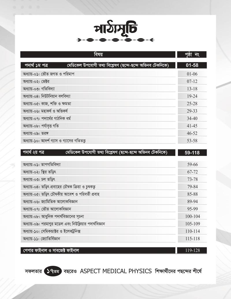 ভর্তি পরীক্ষা অতি সন্নিকটে তাই শেষ সময়ে শর্টকাট কিন্তু পূর্ণাঙ্গ প্রস্তুতির জন্য আসপেক্ট সিরিজের হাইলাইট হচ্ছে একমাত্র ভরসা । MCQ ও Written পরীক্ষার প্রস্তুতি আরো বেগবান করার জন্য আসপেক্ট হাইলাইটগুলো হবে তোমার সাফল্যের সিড়ি গড়ার কারখানা। ♥ ভর্তি পরীক্ষায় যে অংশ থেকে বেশি প্রশ্ন করা হয় সেই অংশ গুলো Topic অনুযায়ি আলোচনা করা হয়েছে ♥ সহজে প্রতিটি লাইন মনে রাখার জন্য রয়েছে Exclusive Tricks and Tips ♥ প্রতি অধ্যায় শেষে মানসম্মত প্রশ্নের মাধ্যমে নিজেকে যাচাই করার জন্য থাকছে SELF TEST ♥ Aspect Special যেখানে বইয়ের আলোচনাকে সংক্ষেপে তুলে ধরা হয়েছে ♥ গুরুত্বপূর্ণ লাইন গুলো একসাথে পড়ার জন্য সংযোজন আছে VVI Topics at A Glance ♥ সবশেষে রয়েছে Model Test যার মাধ্যমে নিজের প্রস্তুতি যাচাই করতে পারবে ভর্তি পরীক্ষা অতি সন্নিকটে তাই শেষ সময়ে শর্টকাট কিন্তু পূর্ণাঙ্গ প্রস্তুতির জন্য আসপেক্ট সিরিজের হাইলাইট হচ্ছে একমাত্র ভরসা।