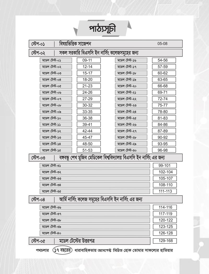 • বইয়ের নামঃ মডেল টেস্ট -বিএসসি ইন নার্সিং
