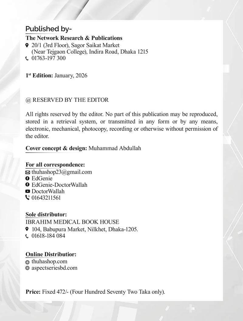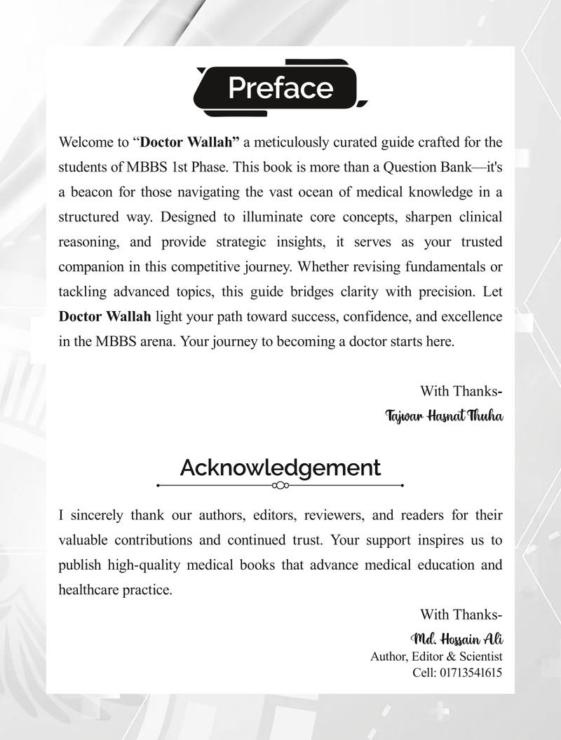 Welcome to "Doctor Wallah" a meticulously curated guide crafted for the students of MBBS 1st Phase. This book is more than a Question Bank-it's a beacon for those navigating the vast ocean of medical knowledge in a structured way. Designed to illuminate core concepts, sharpen clinical reasoning, and provide strategic insights, it serves as your trusted companion in this competitive journey. Whether revising fundamentals or tackling advanced topics, this guide bridges clarity with precision. Let Doctor Wallah light your path toward success, confidence, and excellence in the MBBS arena. Your journey to becoming a doctor starts here.
