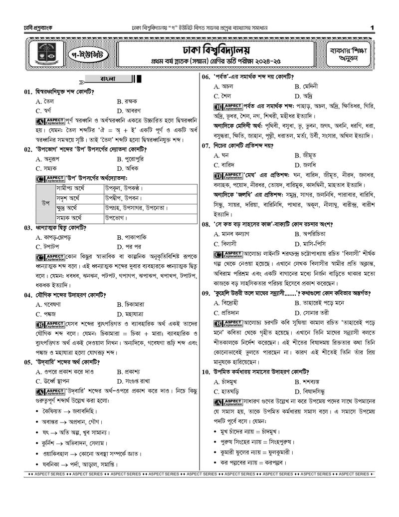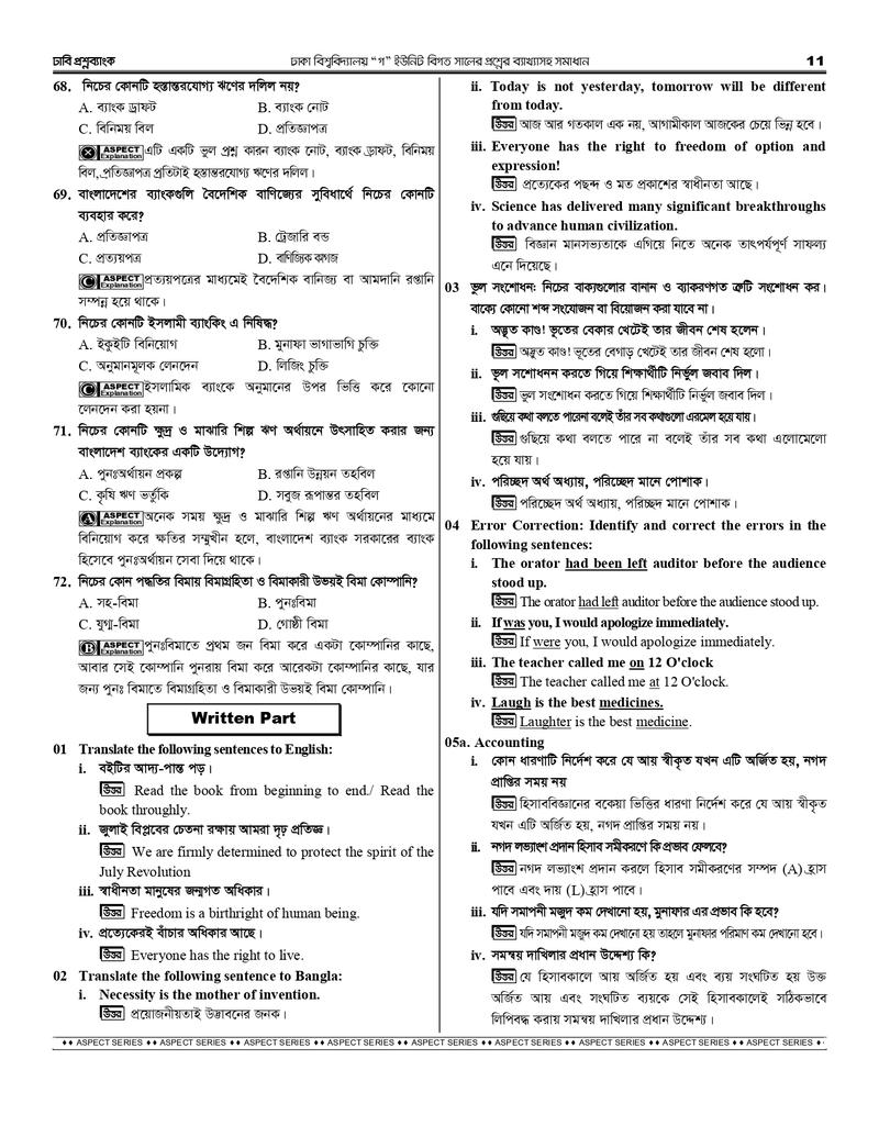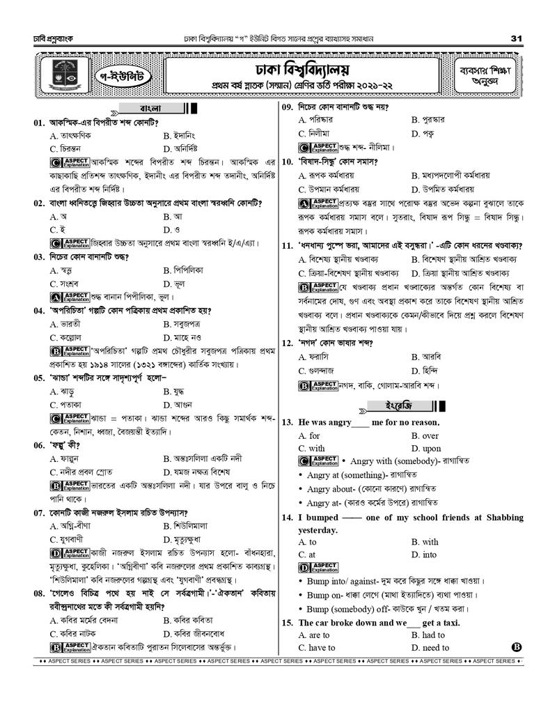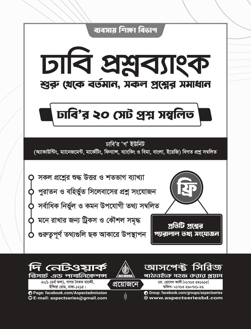 ঢাবি'র 'গ' ইউনিট (অ্যাকাউন্টিং, ম্যানেজমেন্ট, মার্কেটিং, ফিন্যান্স, ব্যাংকিং ও বিমা, বাংলা, ইরেজি) বিগত প্রশ্ন সম্বলিত