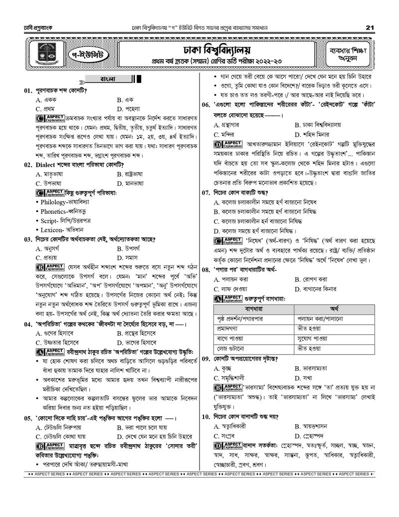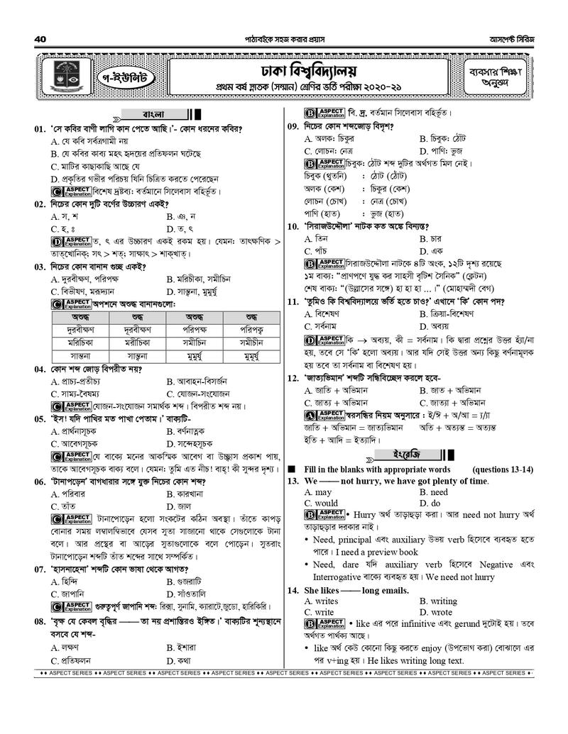 ঢাবি'র ২০ সেট প্রশ্ন সম্বলিত