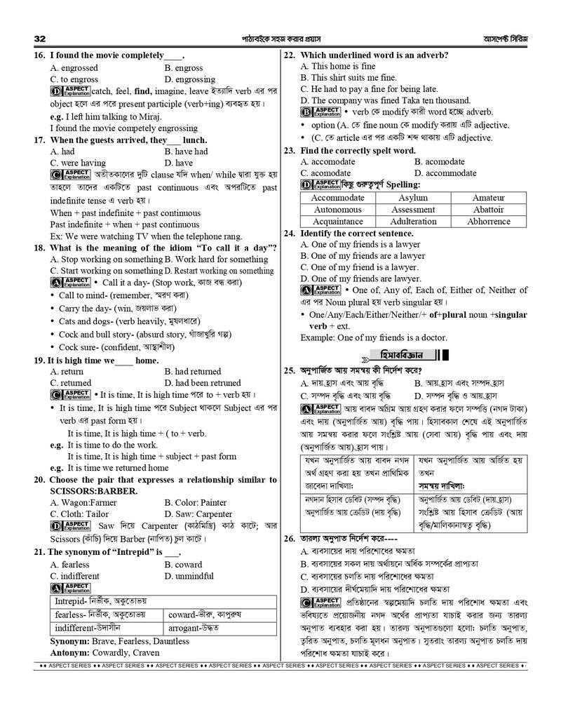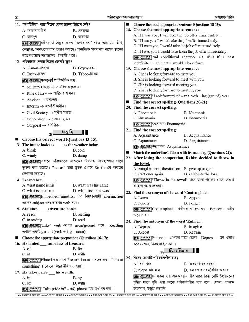 সকল প্রশ্নের শুদ্ধ উত্তর ও শতভাগ ব্যাখ্যা