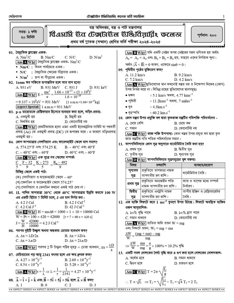 Step-01 : টেক্সটাইল কলেজের শুরু থেকে বর্তমান সকল প্রশ্নের ব্যাখ্যাসহ সমাধান।