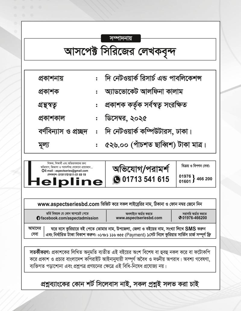বইটি একই সাথে প্রশ্ন ব্যাংক ও সহায়িকা হিসেবে তোমাদের পূর্ণাঙ্গ প্রস্তুতি নিতে সাহায্য করবে।