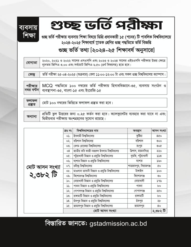 গুচ্ছনলেজ ব্যবসায় শিক্ষা ভর্তি সহায়িকা