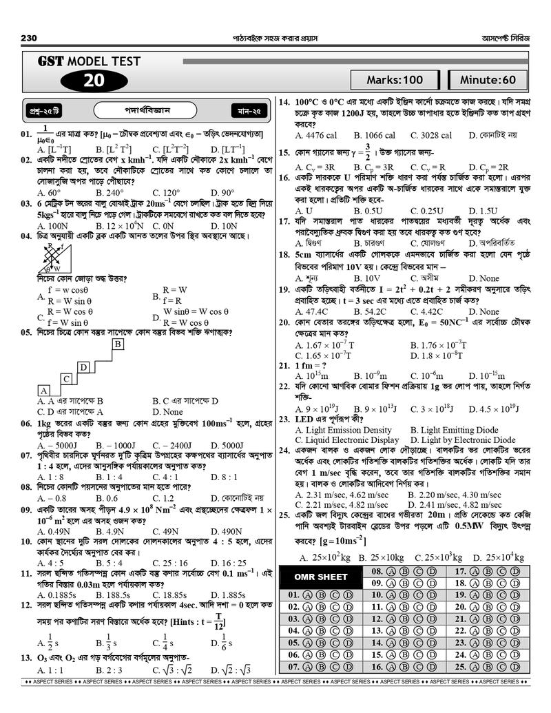 গুচ্ছ চর্চা - গুচ্ছ মডেল টেস্ট (বিজ্ঞান)