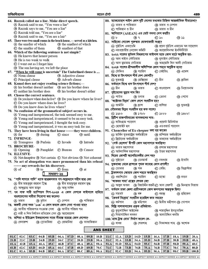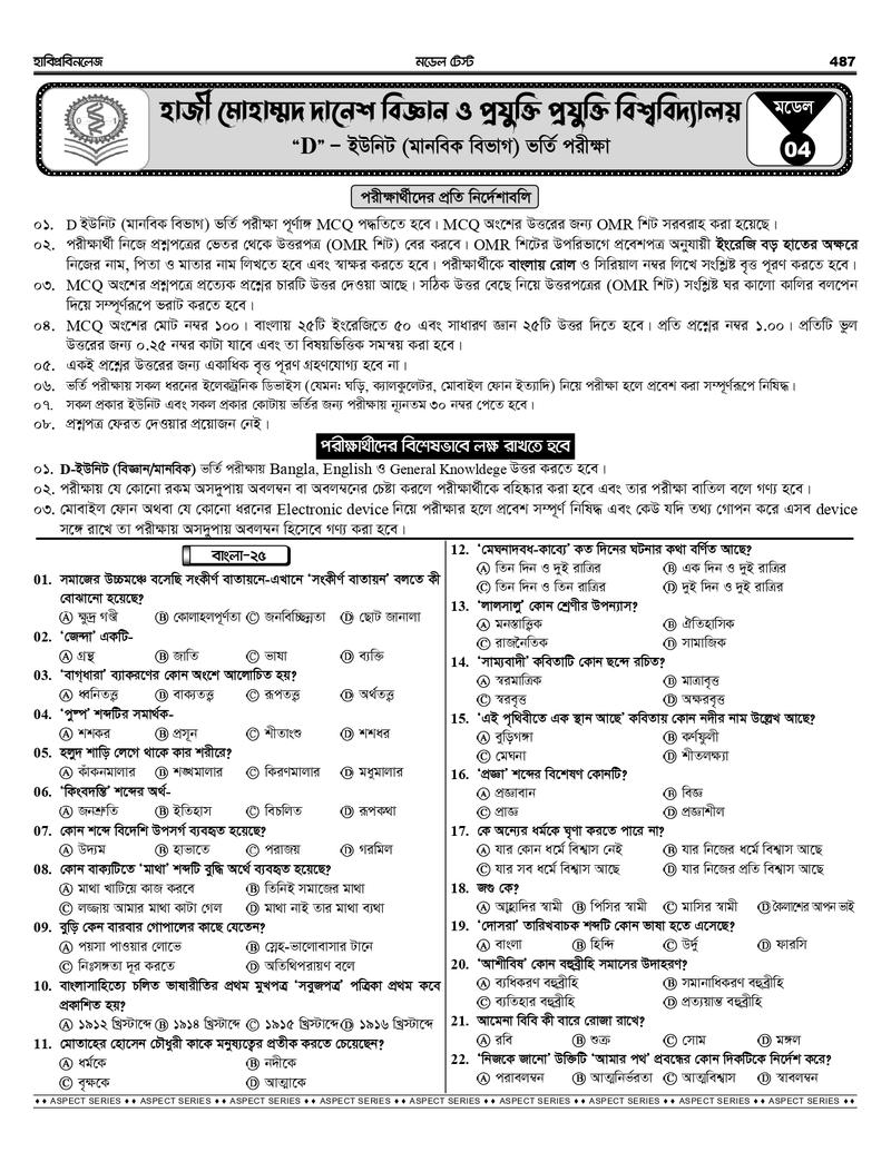 হাবিপ্রবি'র অনুরূপ ৫টি স্পেশাল মডেল টেস্ট