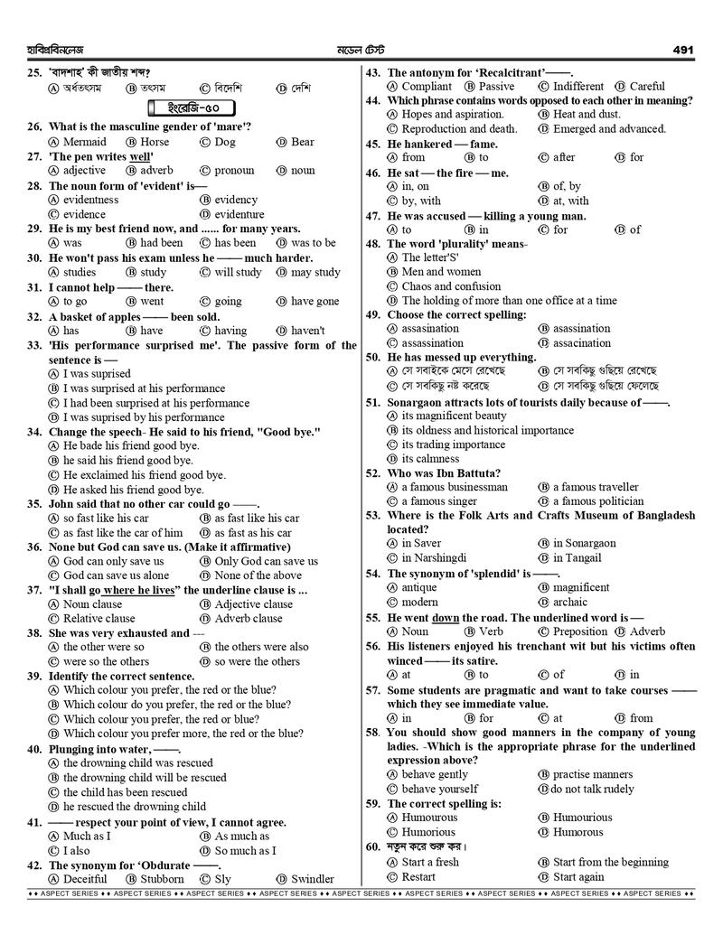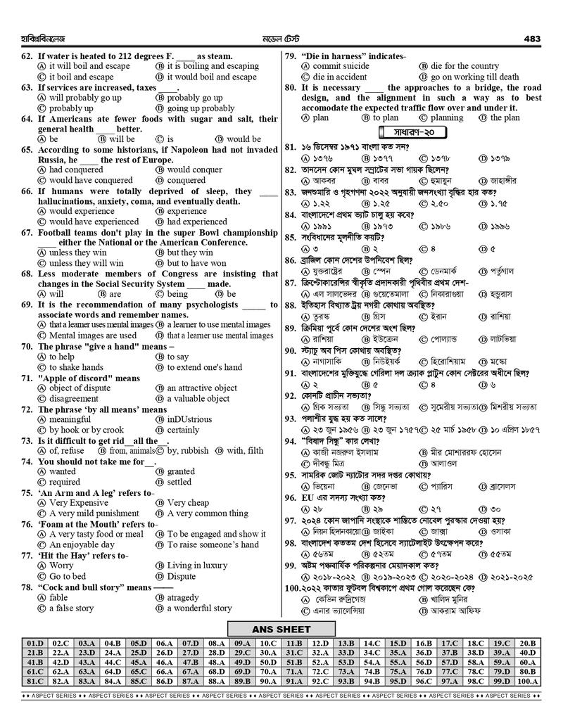 বাংলা, ইংরেজি ও সাধারণ জ্ঞান বিষয়ের সাজেশন