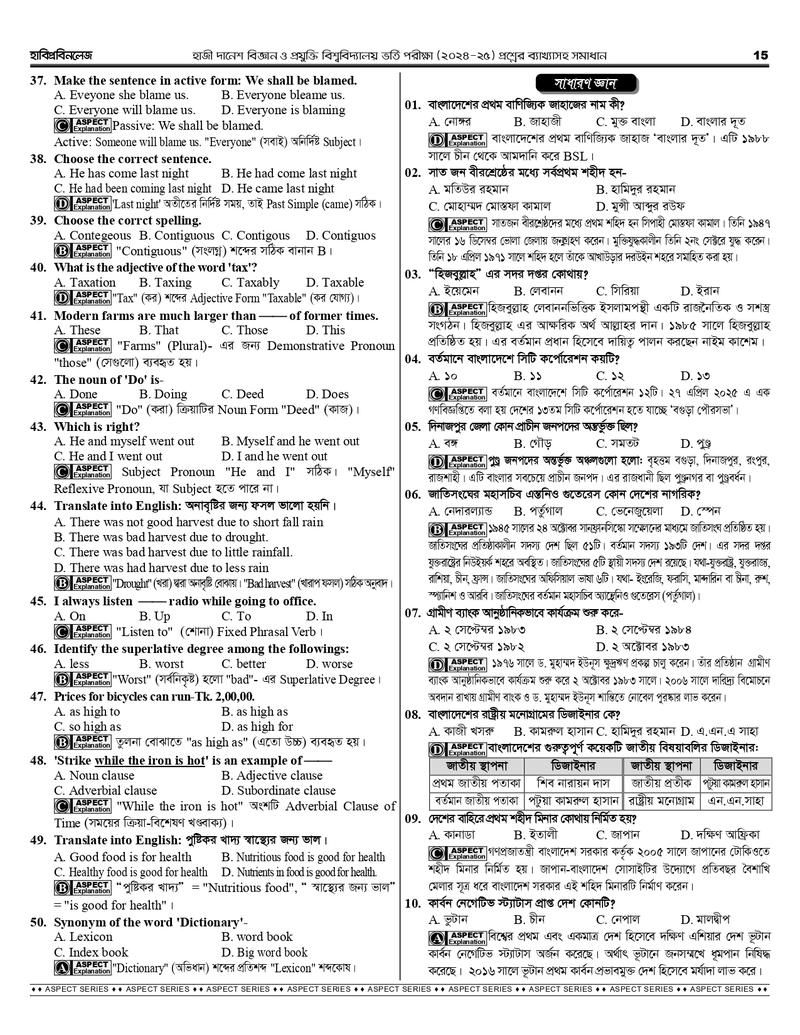 হাবিপ্রবি'র বিগত বছরের প্রশ্ন সম্বলিত