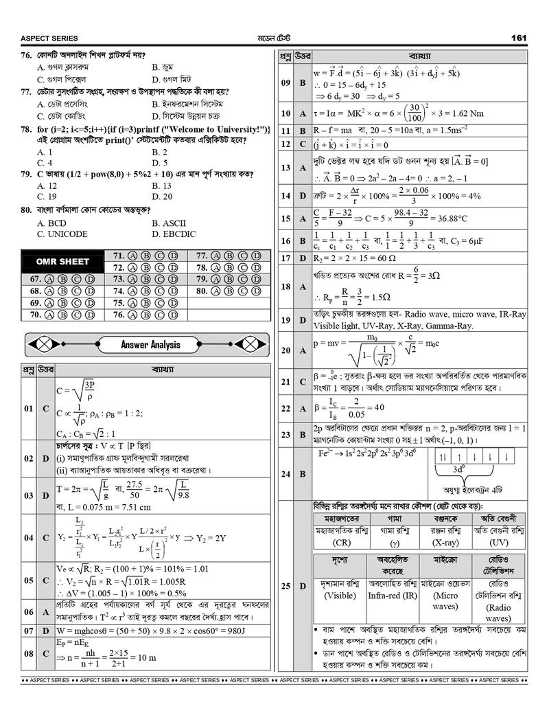 ☑️প্রতিটি প্রশ্নের ব্যাখ্যাসহ সমাধান ও নিজে নিজে পরীক্ষা দেয়ার OMR শীট