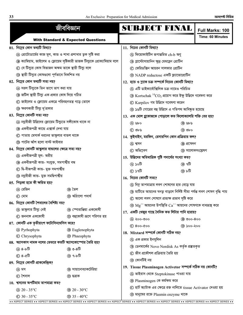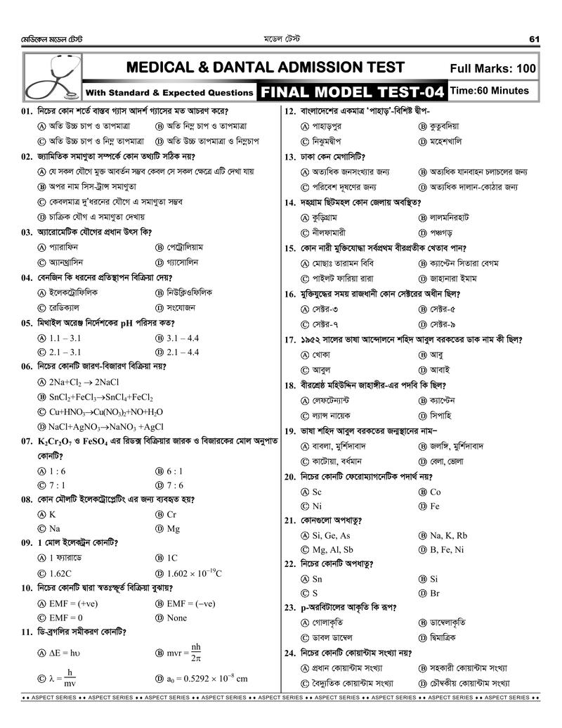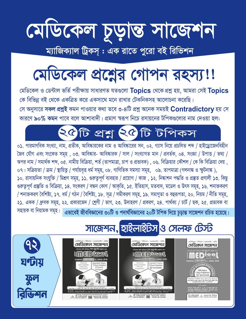 1. মেডিকেল চুড়ান্ত সাজেশন থেকে গত বছর ৭৫ নম্বর থেকে ৬১+ উত্তর করা সম্ভব হয়েছে।