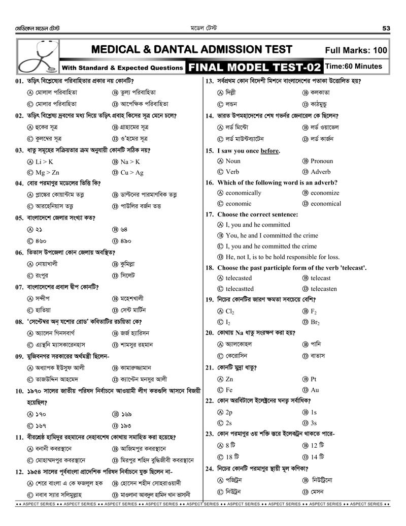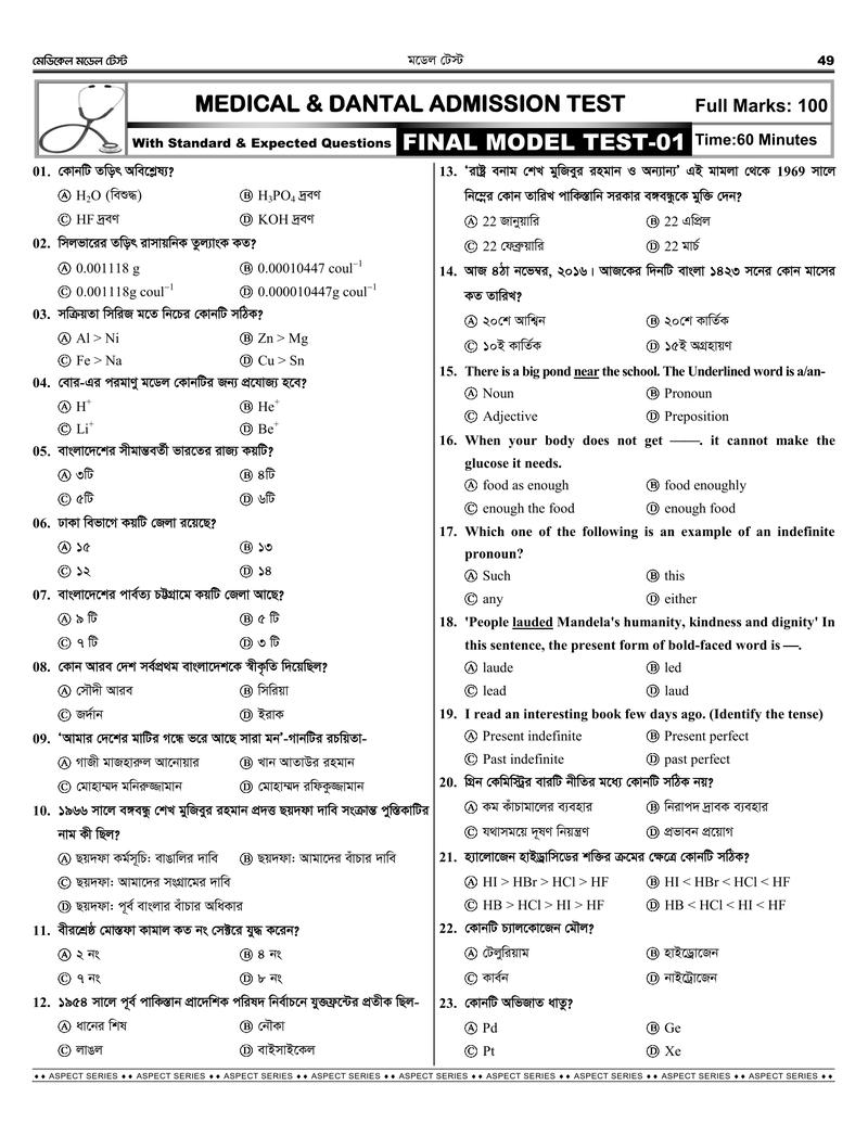 মেডিকেল শেষ সময়ের চূড়ান্ত প্রস্তুতিঃ