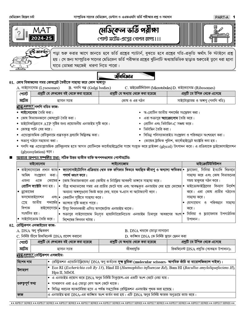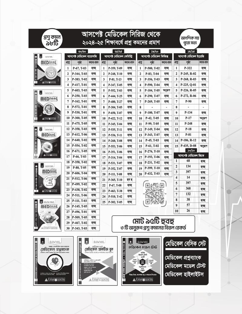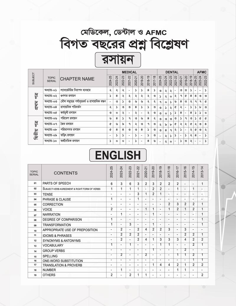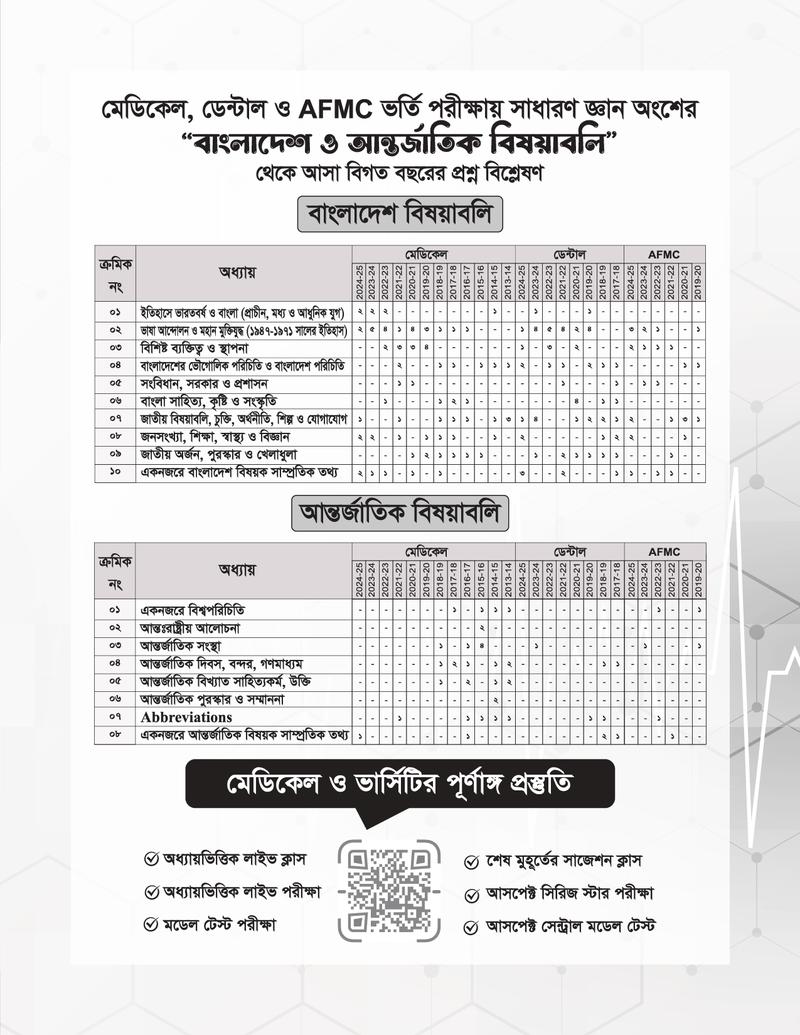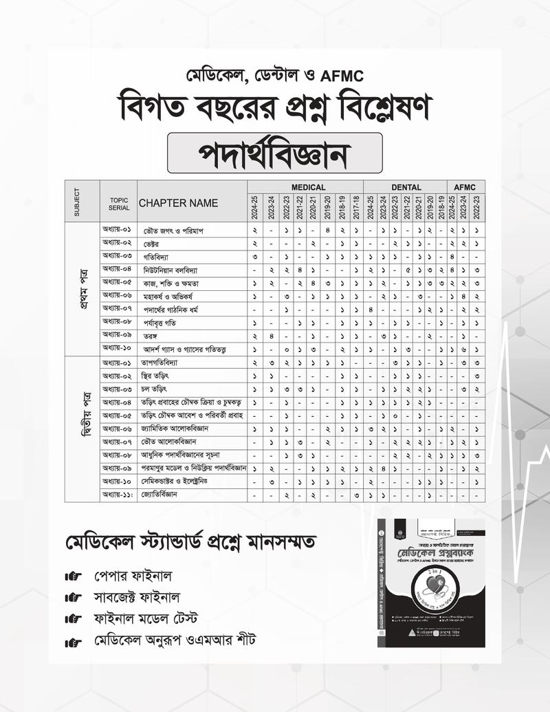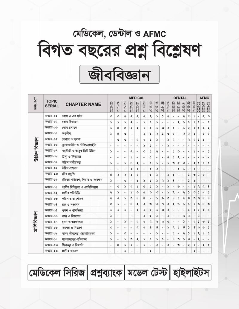 - মেডিকেল প্রশ্নঃ বিগত ২২ সালের অধিক মেডিকেল প্রশ্নের অধ্যায়ভিত্তিক ও টপিকস অনুযায়ী ব্যাখ্যাসহ বিশ্লেষণ