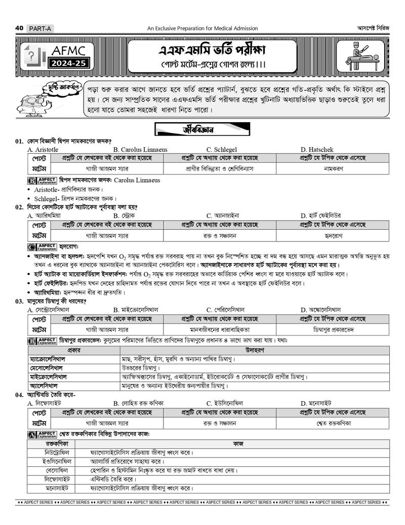 - AFMC প্রশ্নঃ বিগত ০৪ সালের অধিক AFMC প্রশ্নের অধ্যায়ভিত্তিক এ টপিকস অনুযায়ী ব্যাখ্যাসহ বিশ্লেষণ