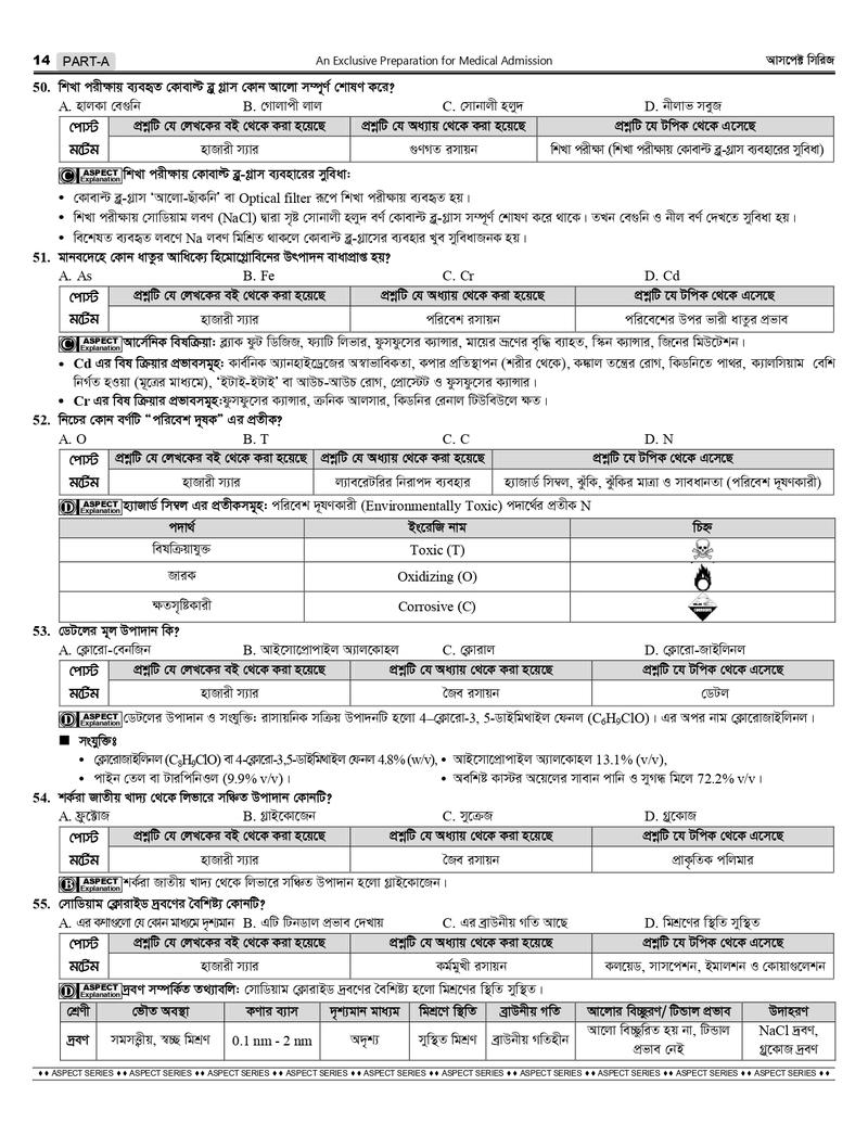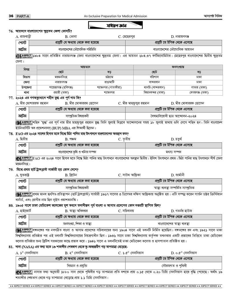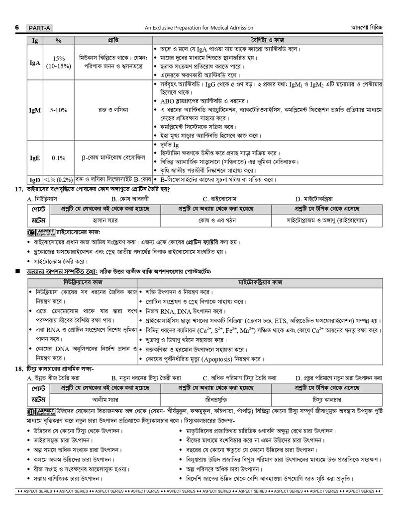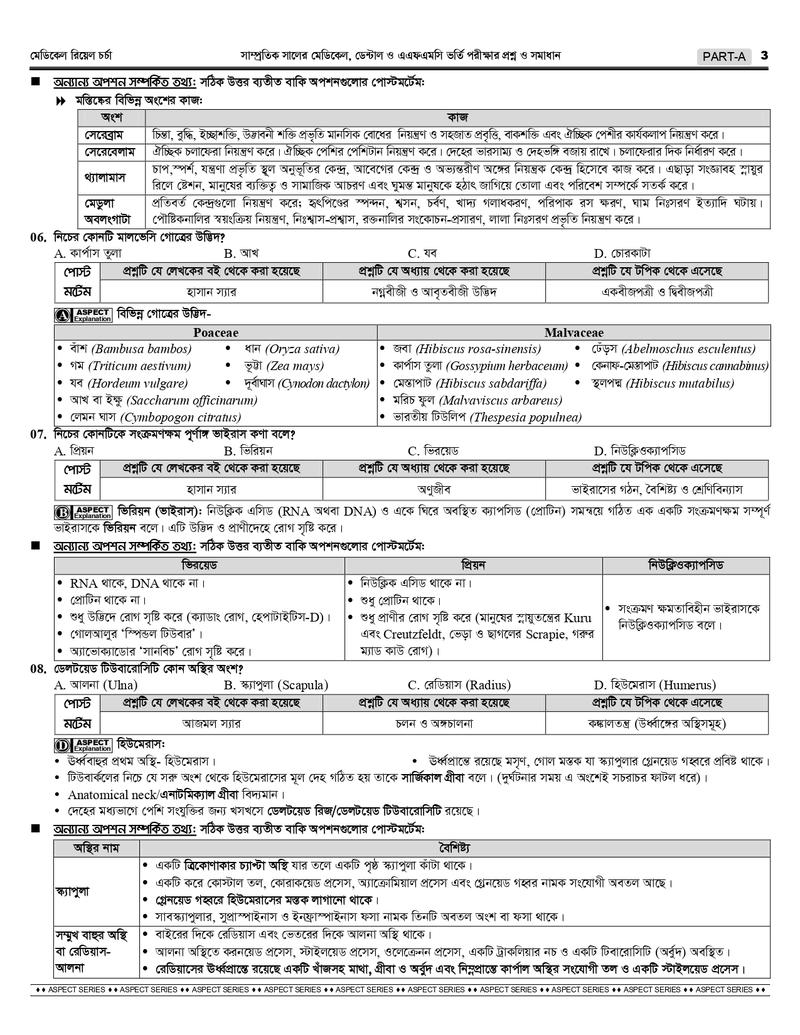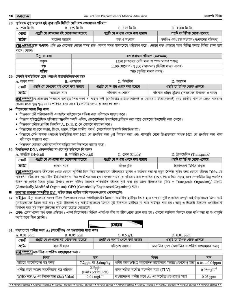 - প্যারালাল তথ্যঃ প্রতিটি প্রশ্নের সাথে সাদৃশ্যপূর্ণ তথ্য উপস্থাপন যা প্যারালাল তথ্য আকারে মেডিকেল ভর্তি পরীক্ষায় প্রায়ই আসে।