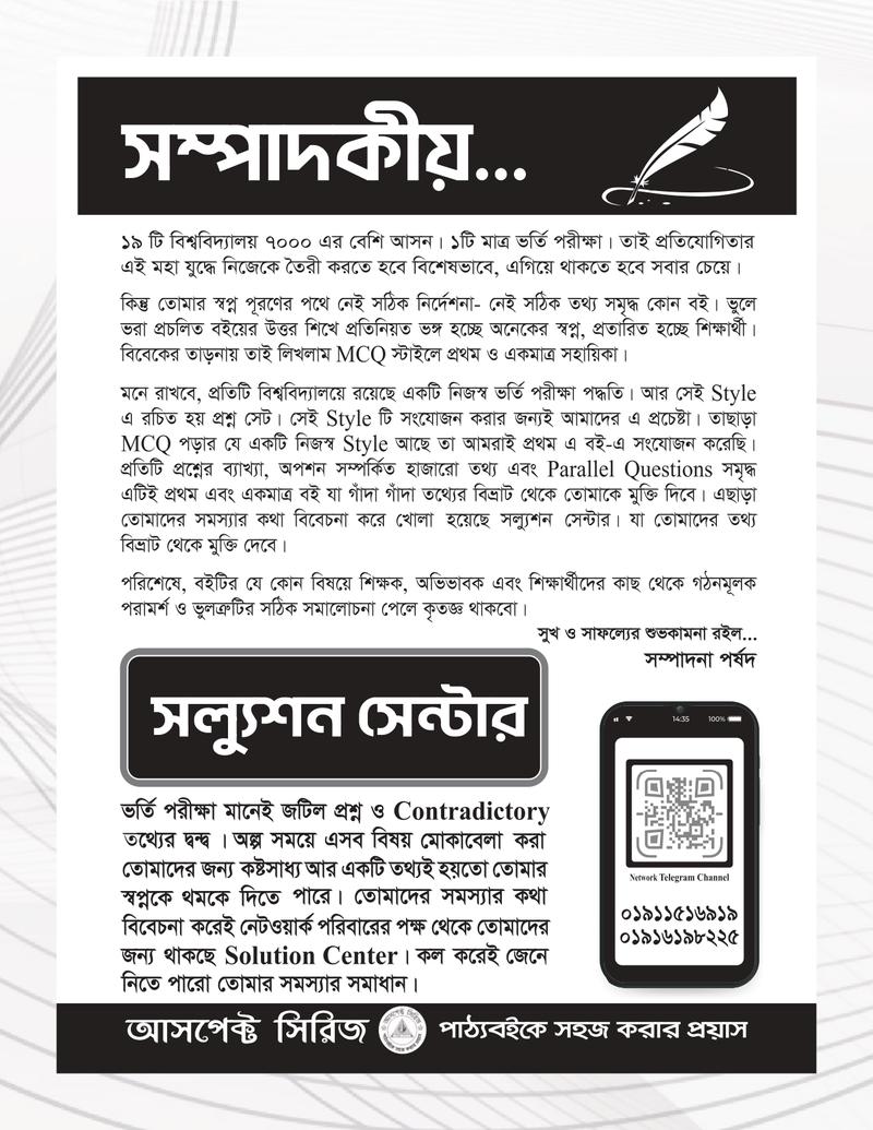 গুচ্ছ ভর্তির পূর্ণাঙ্গ প্রস্তুতির জন্য সাজেশন, আলোচনা, প্রশ্নব্যাংক ও মডেলটেস্ট সংবলিত আসপেক্ট সিরিজের সম্পূর্ণ নতুন সংস্করণ " গুচ্ছ নেটওয়ার্ক (বিজ্ঞান) ভর্তি সহায়িকা"