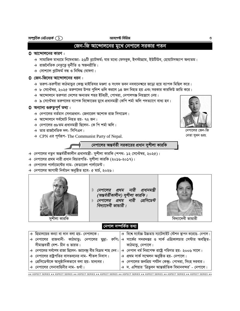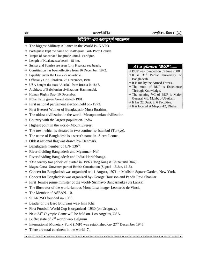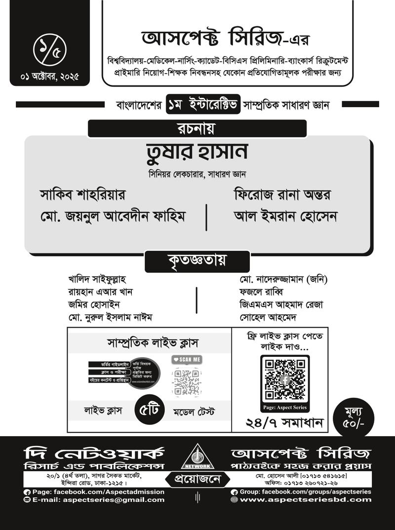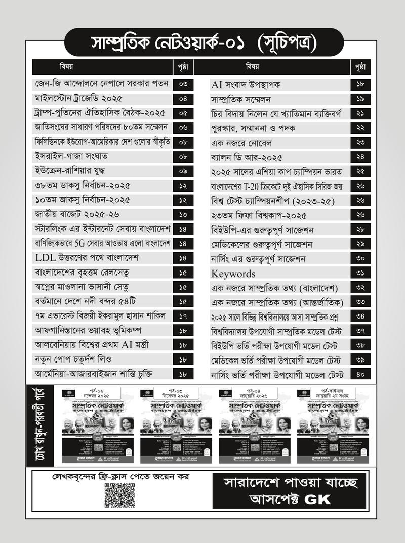 ভর্তি পরীক্ষাসহ যেকোন ধরনের প্রতিযোগিতামূল পরীক্ষায় সাধারণ জ্ঞান অতি গুরুত্বপূর্ণ বিষয়। আর এই সাধারণ জ্ঞান মূলক মুখস্ত করার জন্য সাম্প্রতিক বিষয়গুলি সবসময় চর্চা রাখা জরুরি। শিক্ষার্থীদের প্রয়োজনের কথা বিবেচনা করে নেটওয়ার্ক পরিবার বাজারে এনেছে সাম্প্রতিক নেটওয়ার্ক সিরিজের পর্ব-০১। যা ধারাবাহিকভাবে প্রকাশিত হবে, ইনশা আল্লাহ।