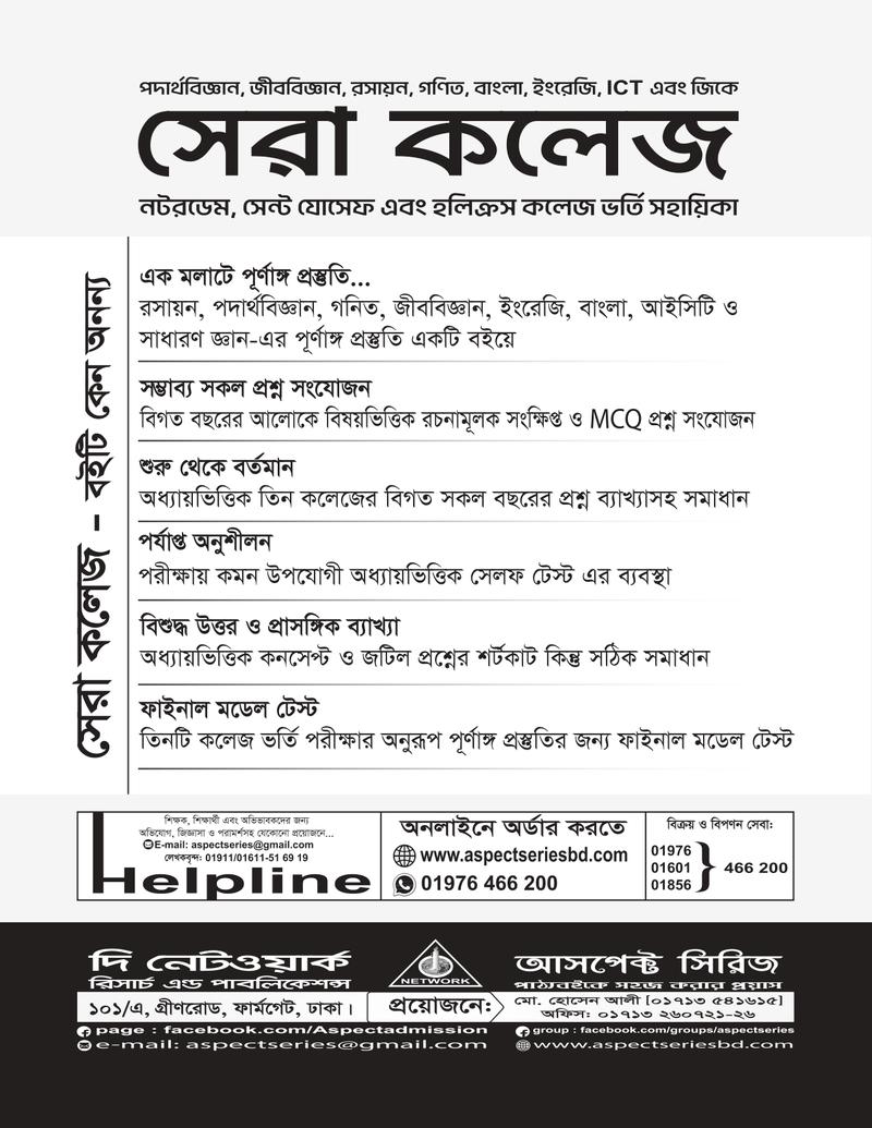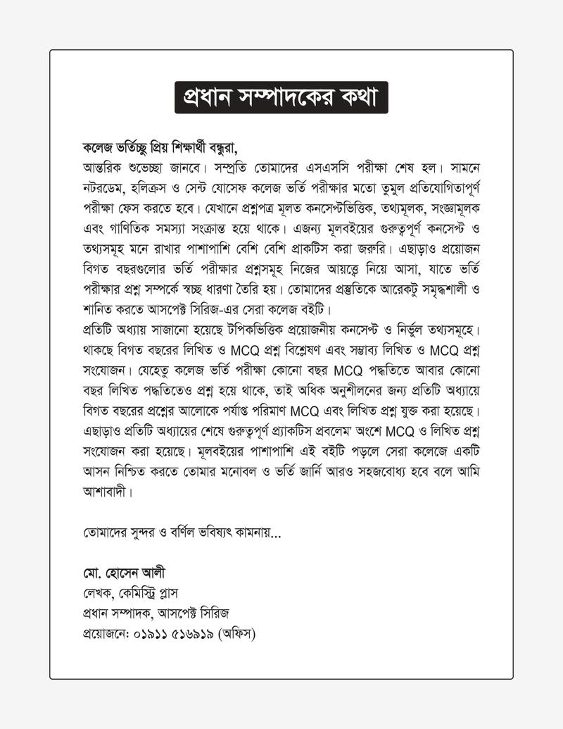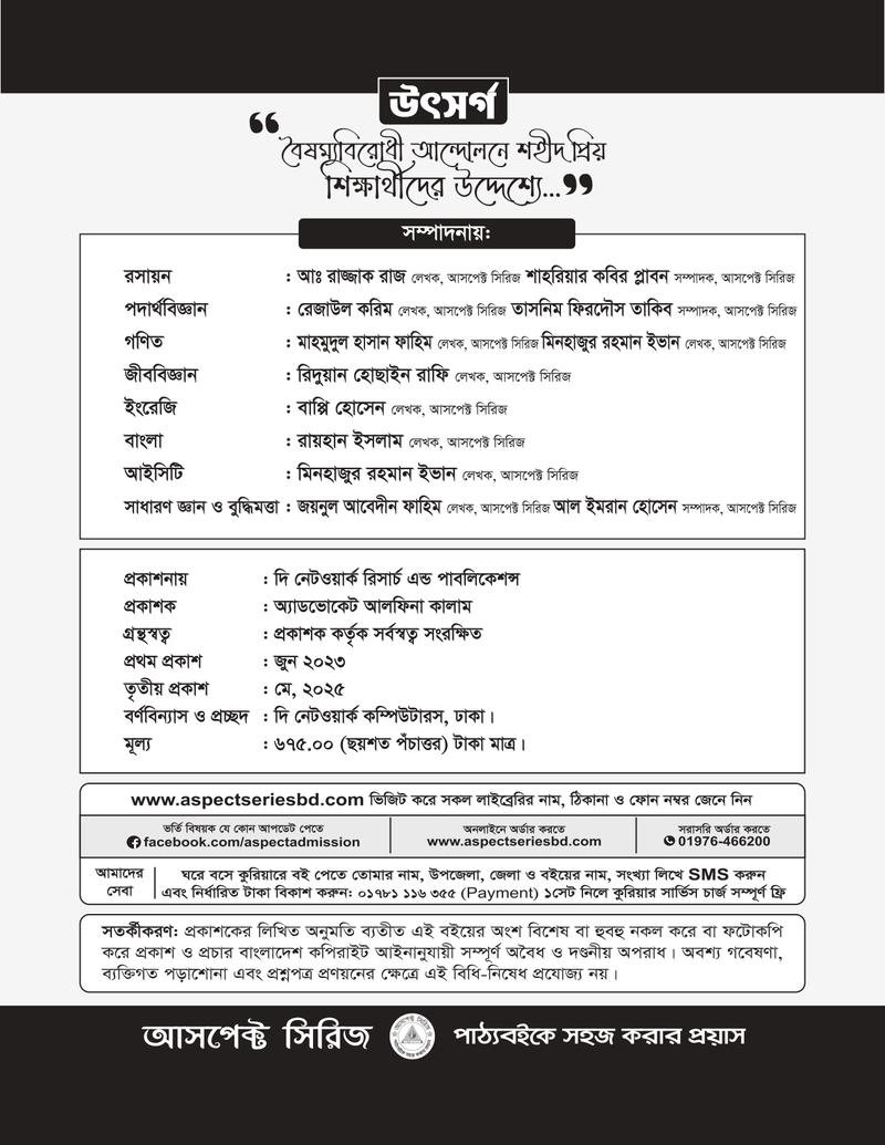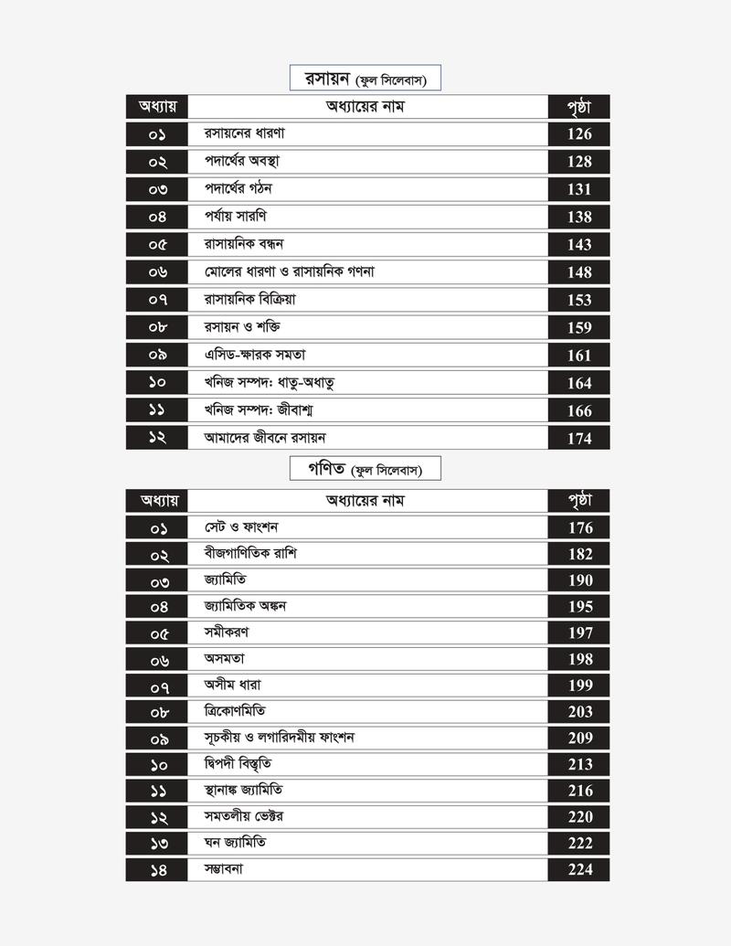 রসায়ন, পদার্থবিজ্ঞান, গনিত, জীববিজ্ঞান, ইংরেজি, বাংলা, আইসিটি ও সাধারণ জ্ঞান- এর পূর্ণাঙ্গ প্রস্তুতি একটি বইয়ে